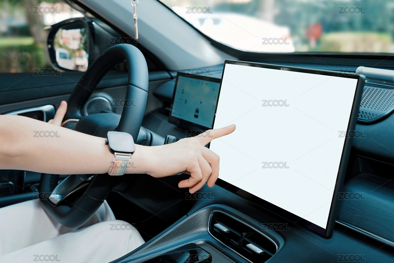 從司機(jī)身旁拍攝汽車方向盤及局部內(nèi)飾