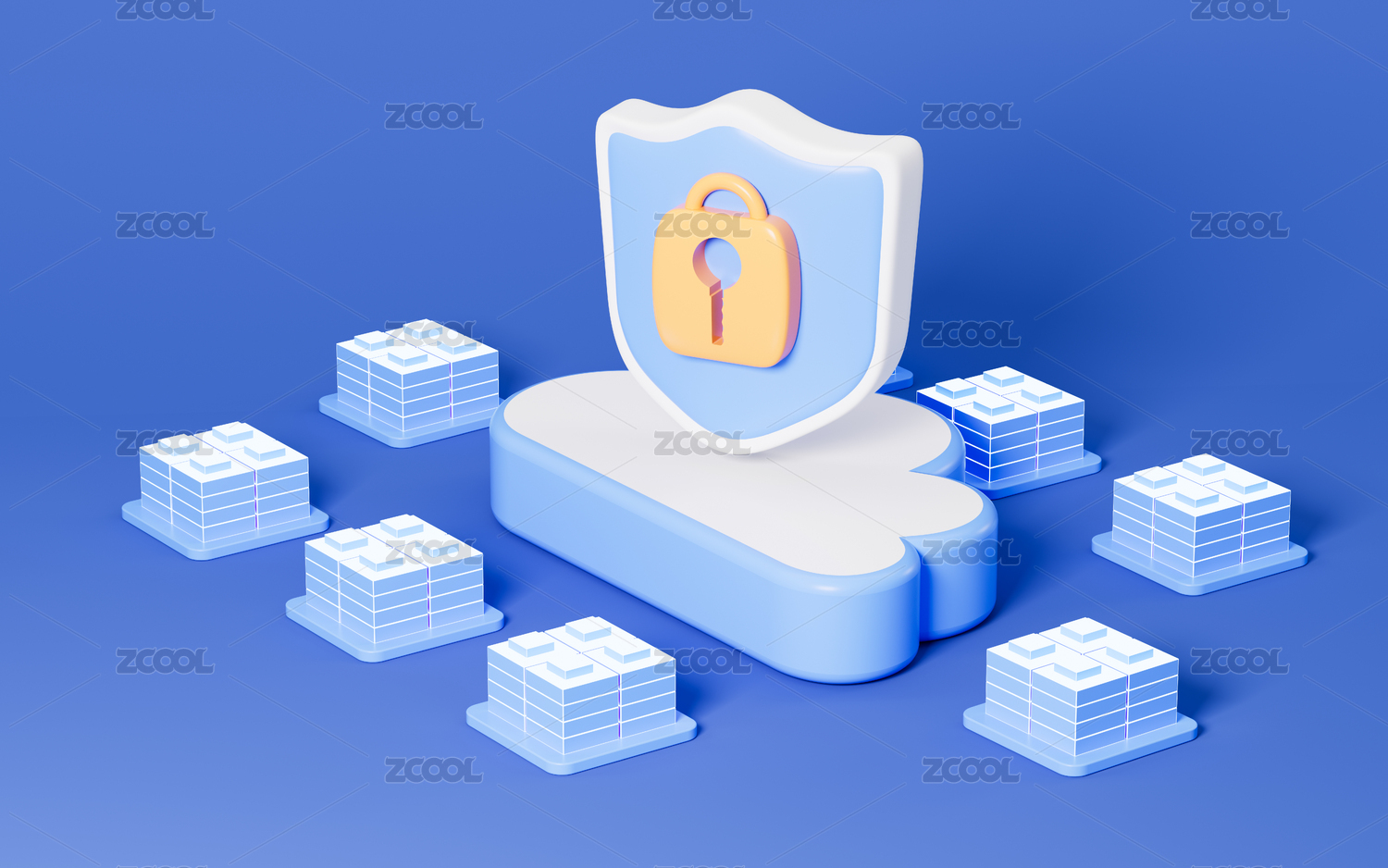 云計(jì)算與數(shù)據(jù)加密防御概念3D渲染