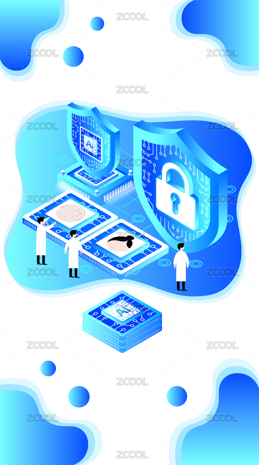 大數(shù)據(jù)AI信息安全防護(hù)加密矢量插畫