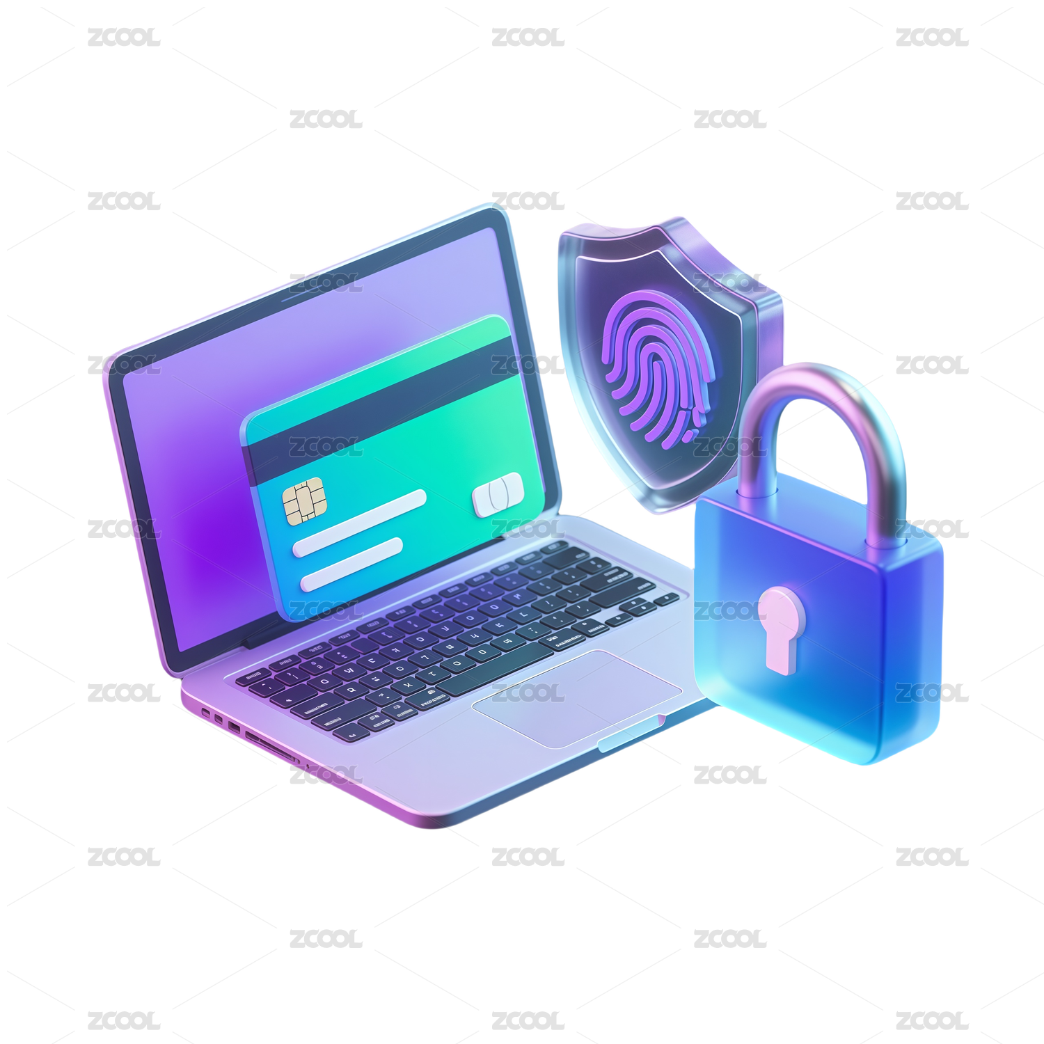 3D風(fēng)格科技行業(yè)加密鎖圖標(biāo)插畫
