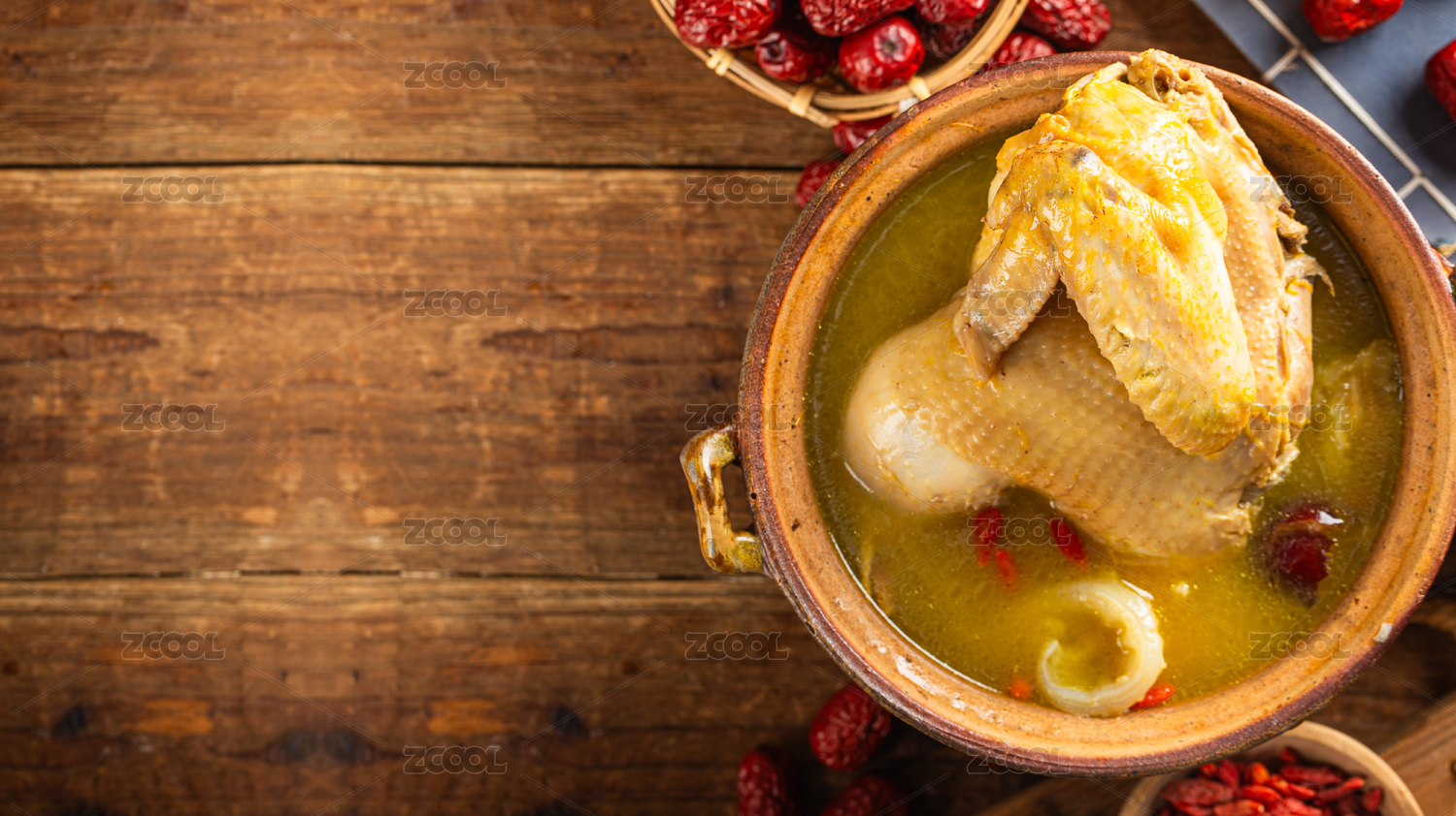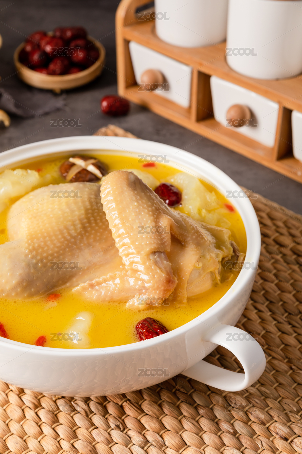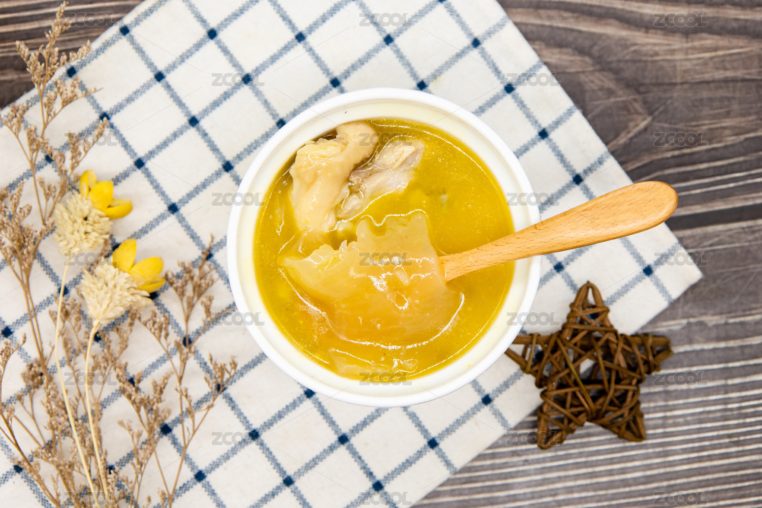 木桌背景營養(yǎng)燉湯花膠雞湯