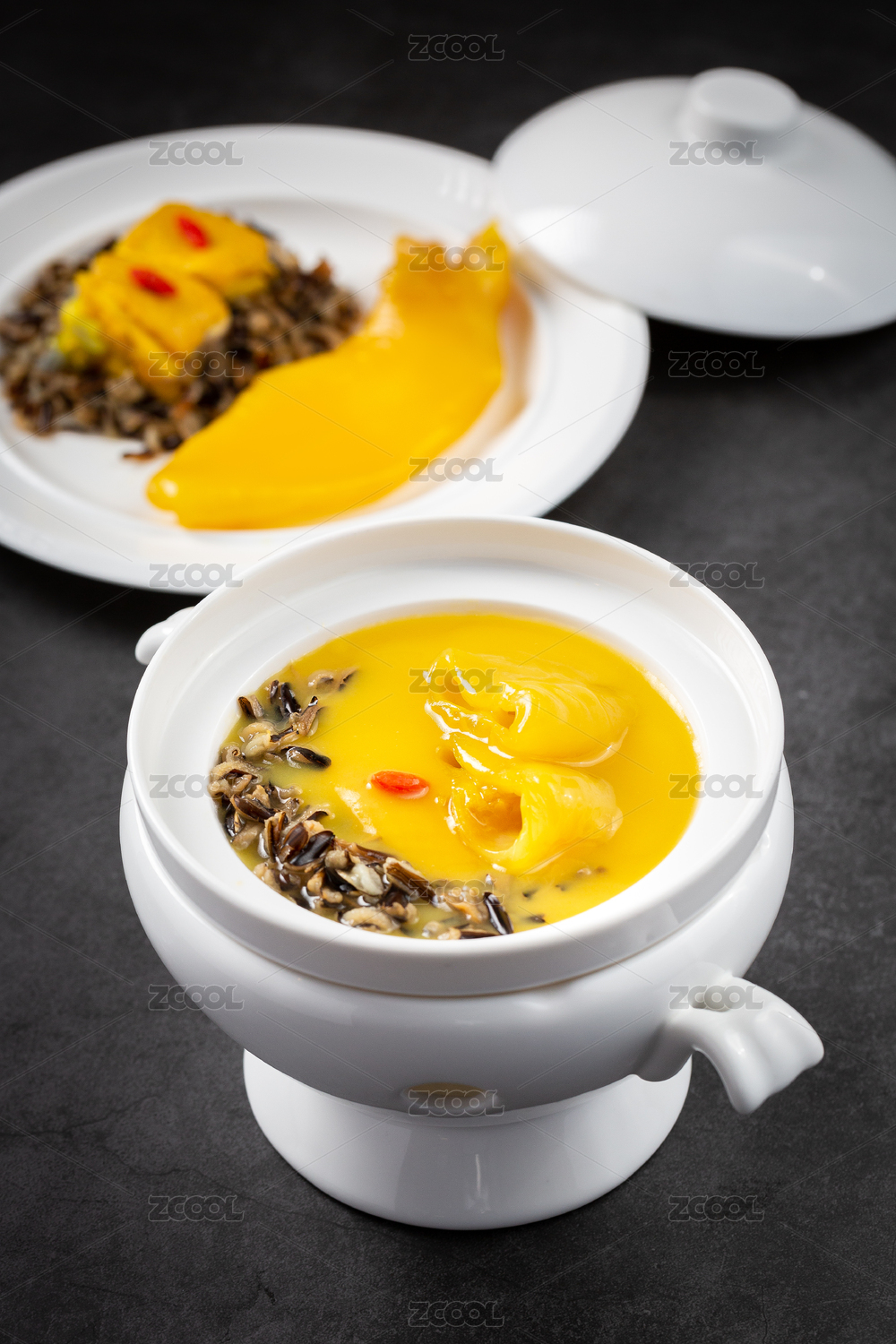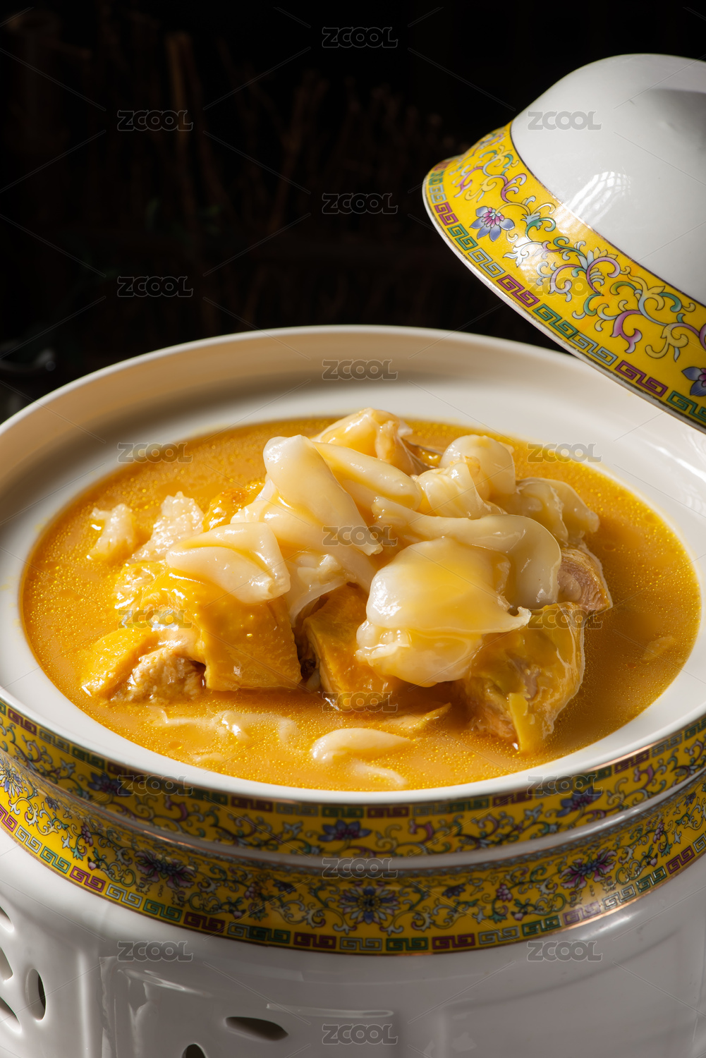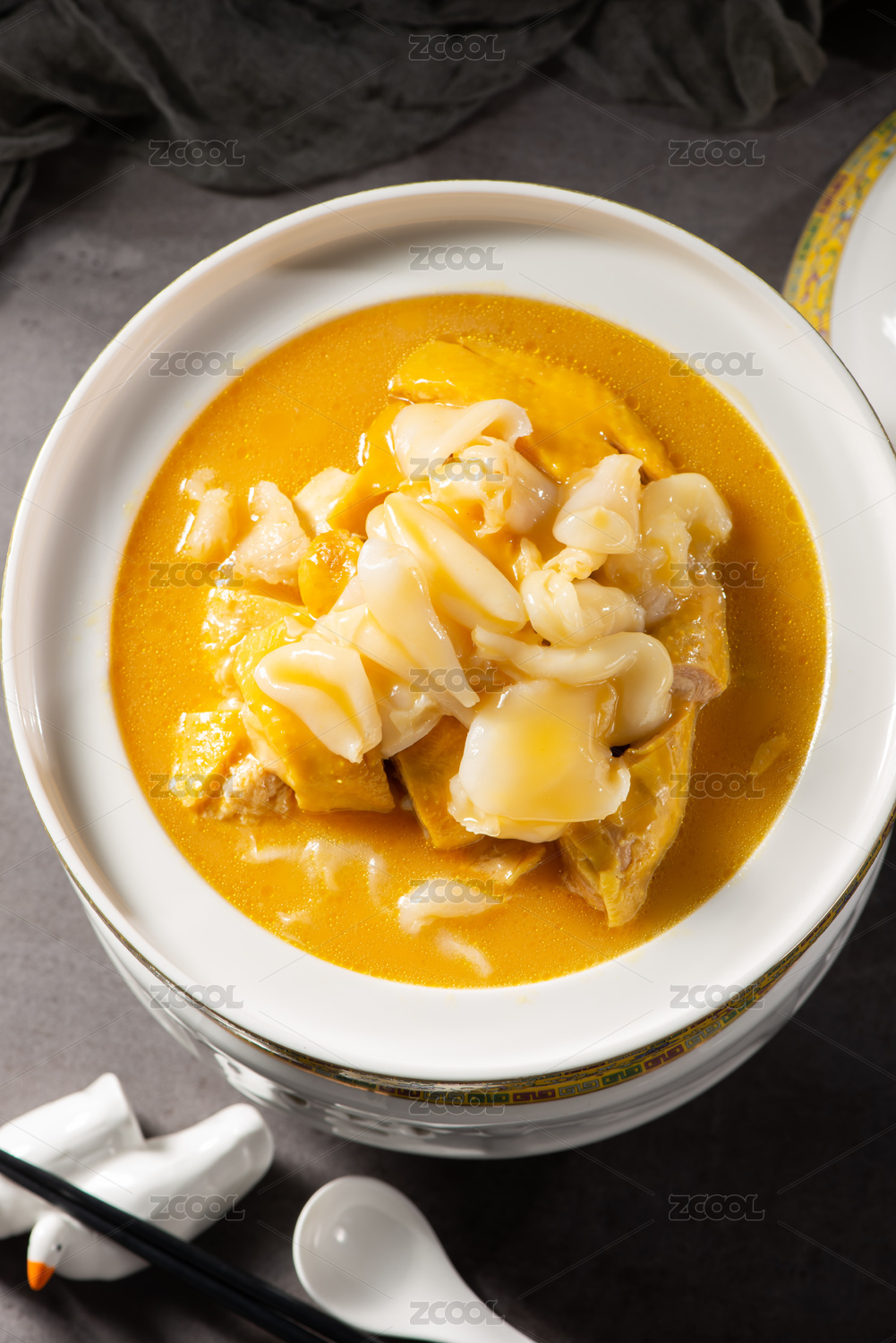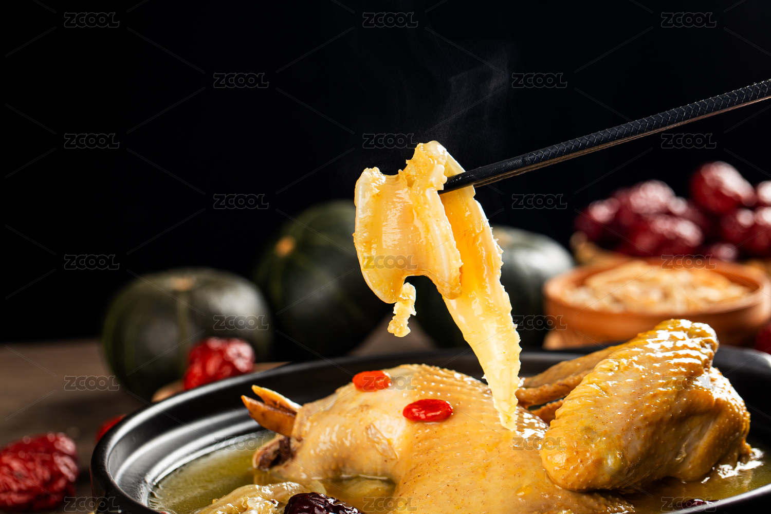 木桌背景營養(yǎng)燉湯花膠雞湯