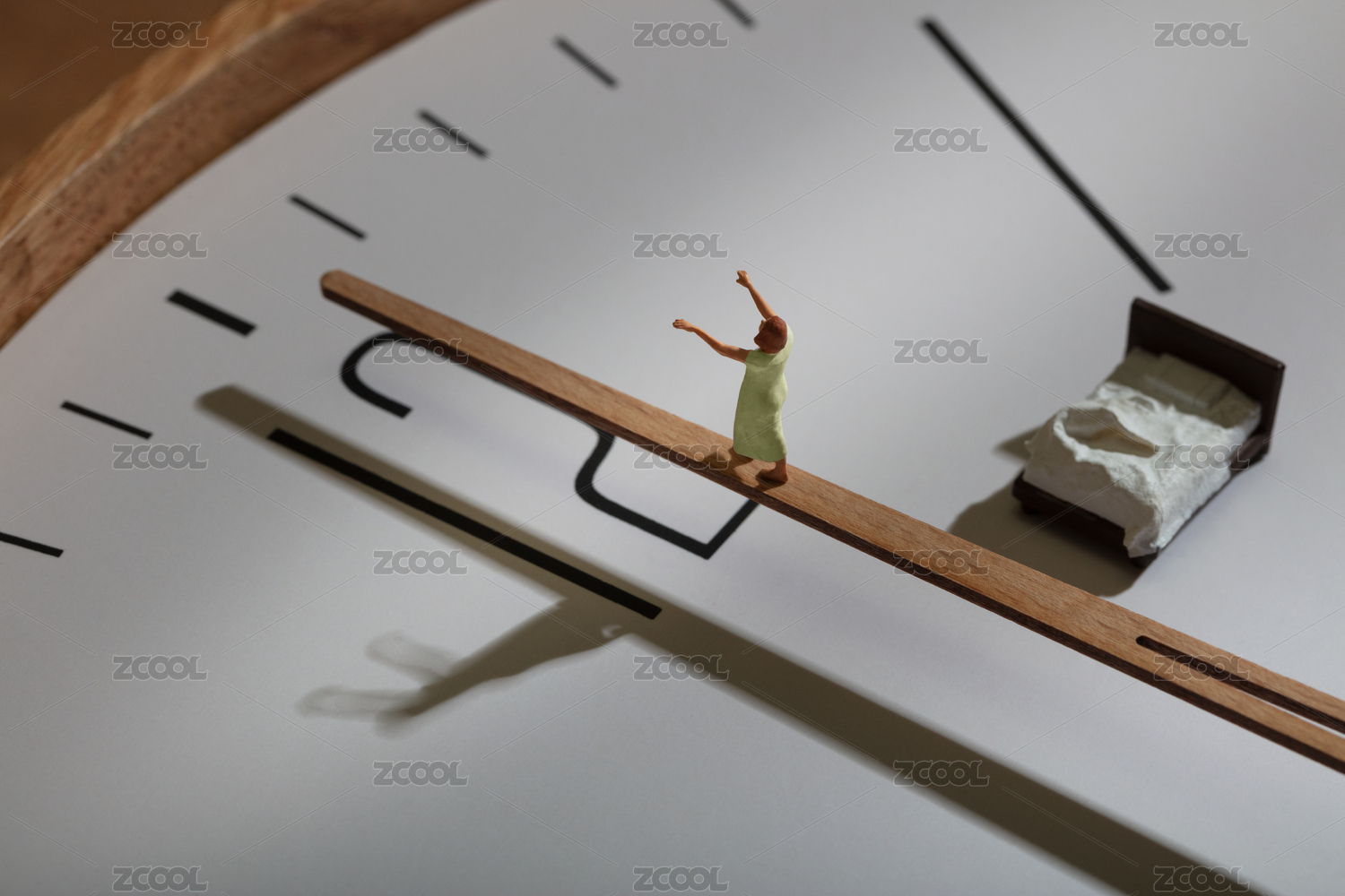 微縮創(chuàng)意在時鐘上夢游的失眠女性