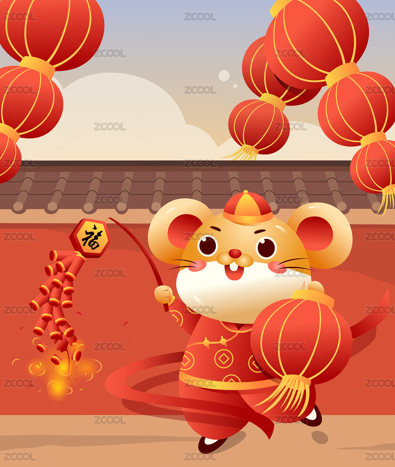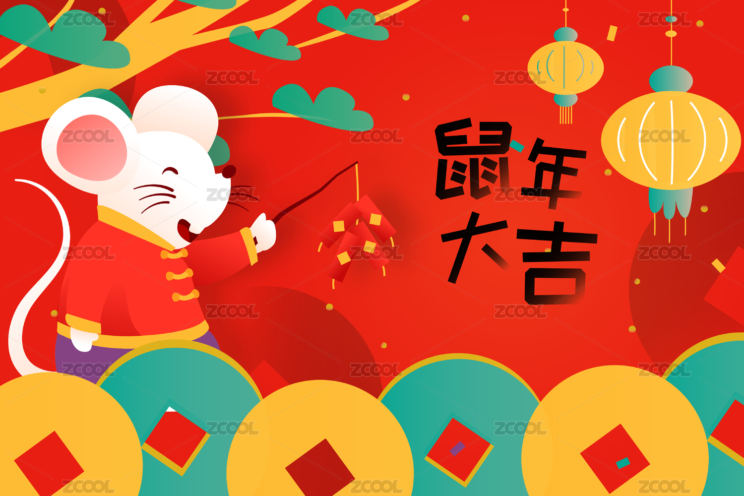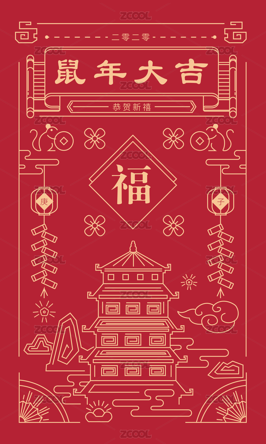 中國(guó)元素插畫慶祝鼠年快樂