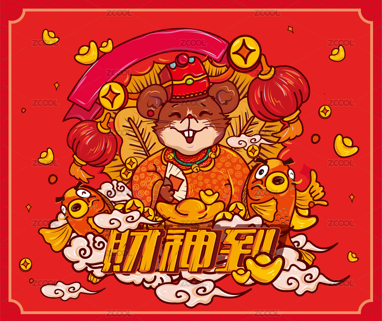 喜慶紅色2020年鼠年財(cái)神創(chuàng)意插畫