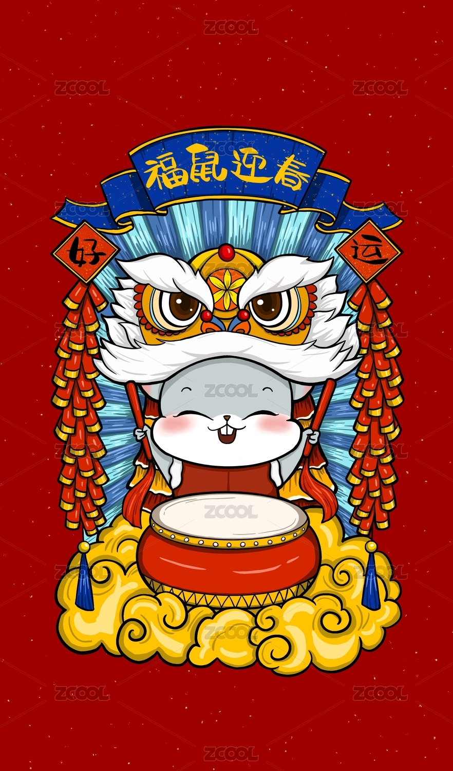 鼠年春節(jié) 小胖鼠 舞獅頭