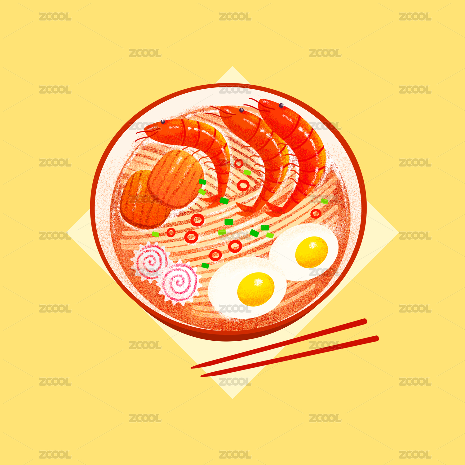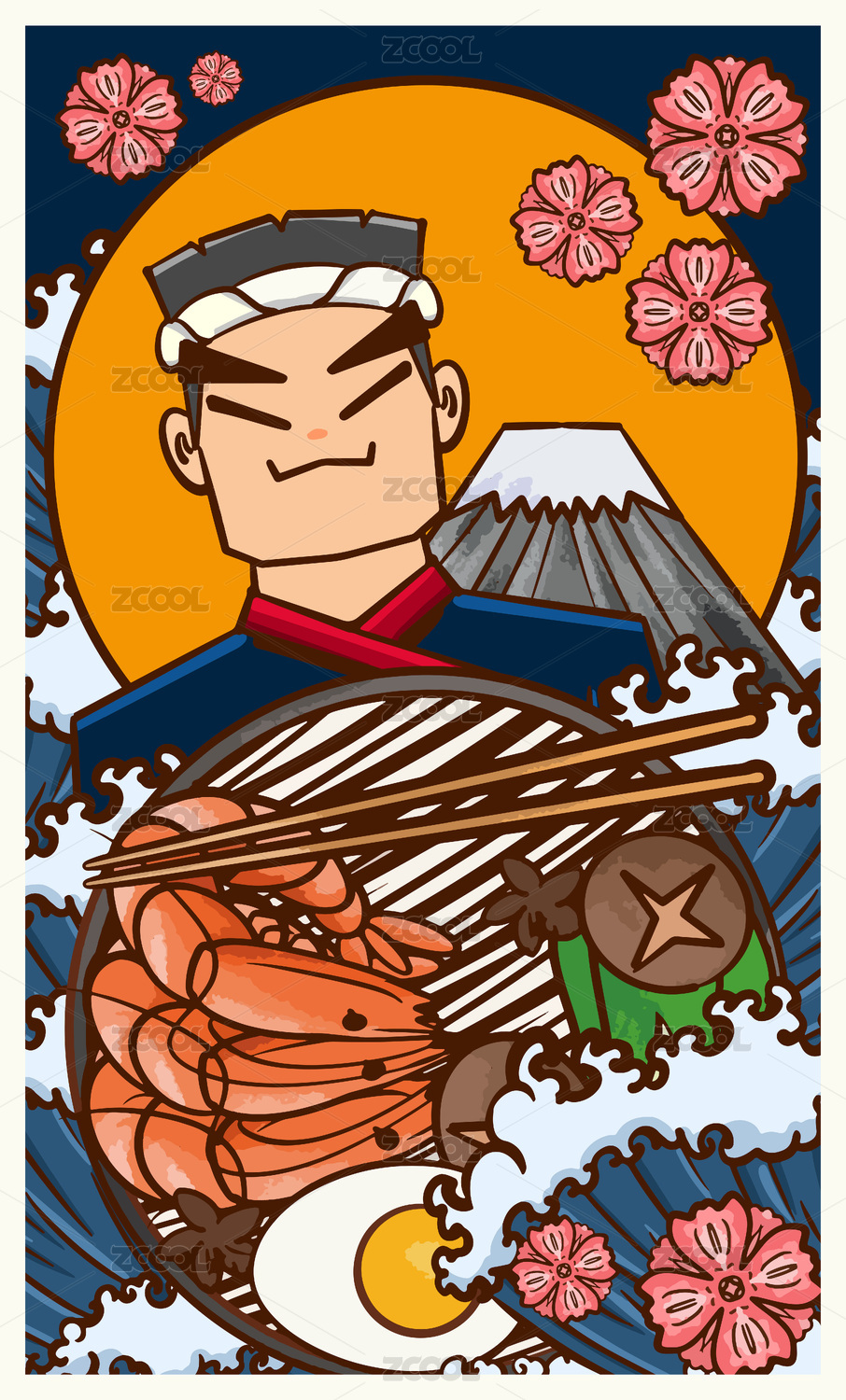 卡通日式餐廳海鮮拉面裝飾插畫設(shè)計(jì)