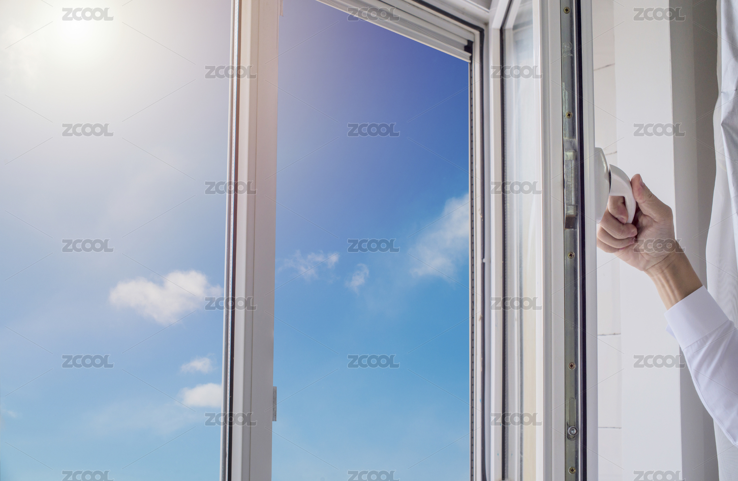 女人用左手打開(kāi)窗戶通風(fēng)換氣