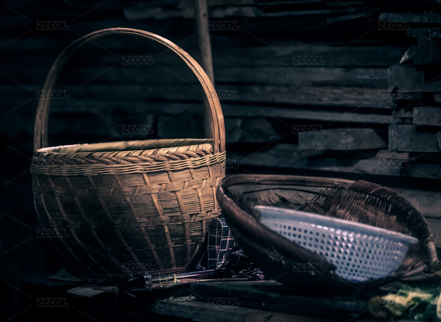 編織竹籃的紋理細(xì)節(jié)
