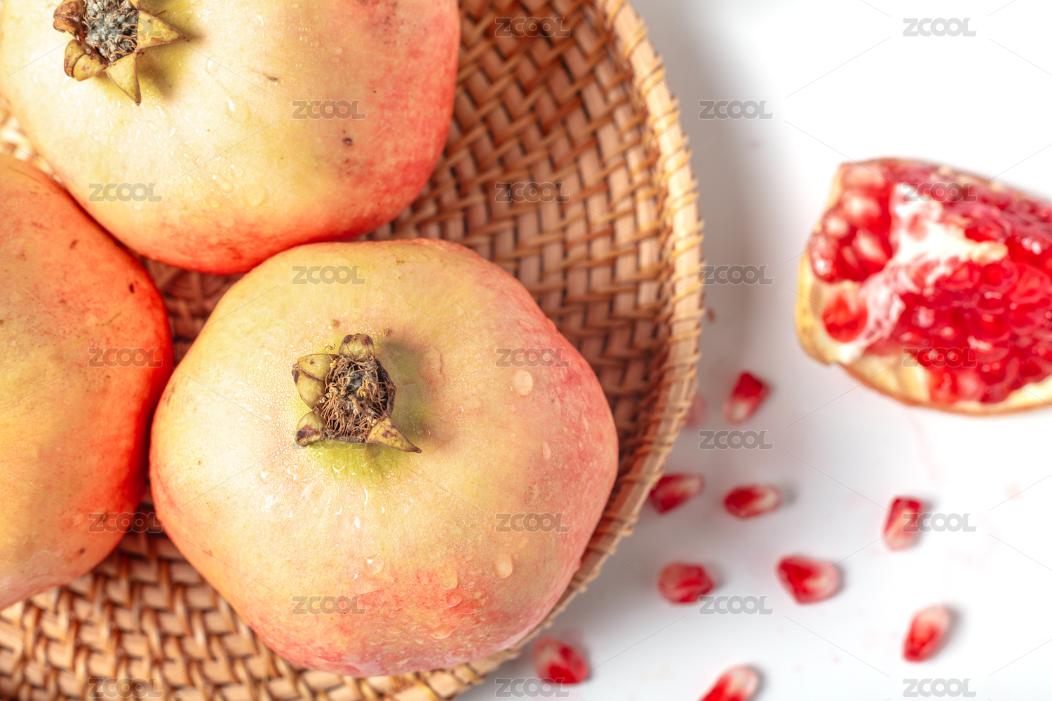 竹籃里的新鮮飽滿大石榴
