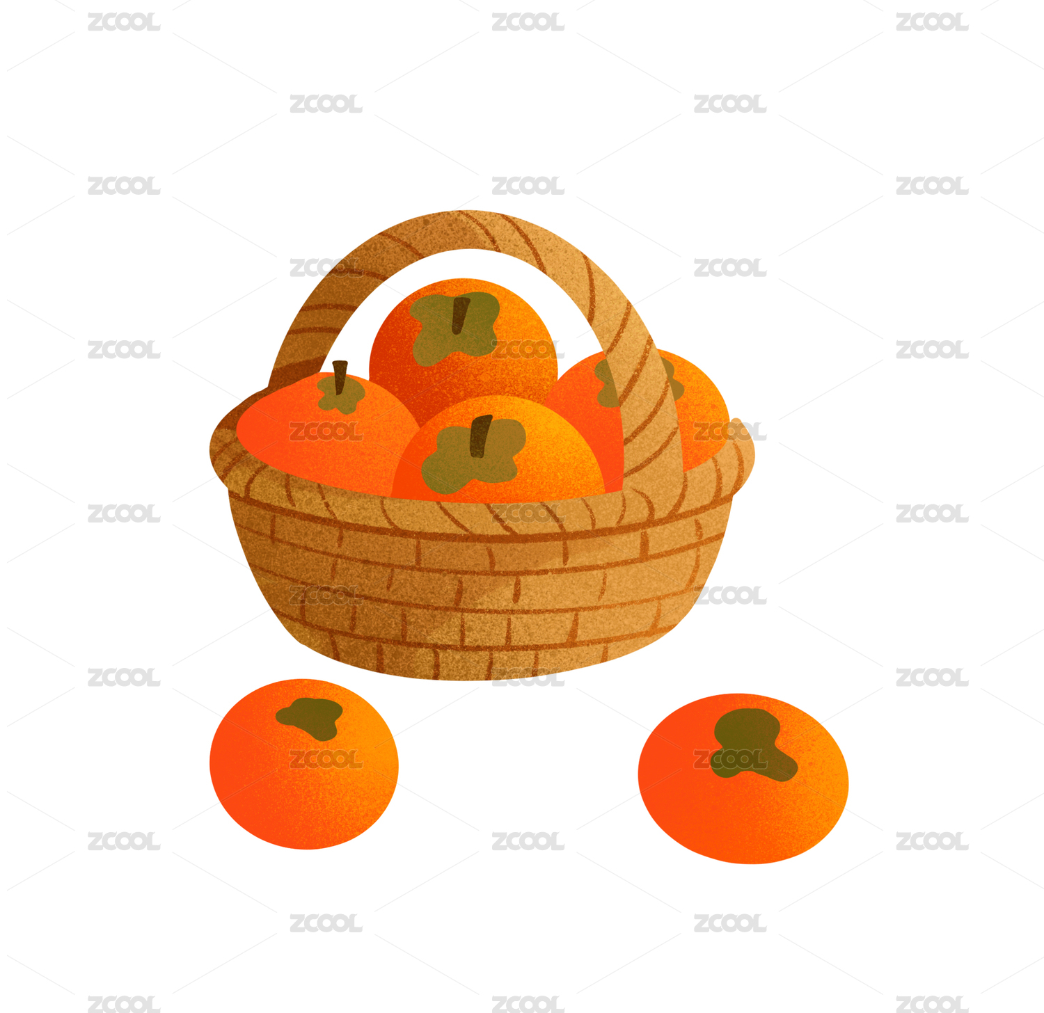 手繪竹籃中的飽滿柿子