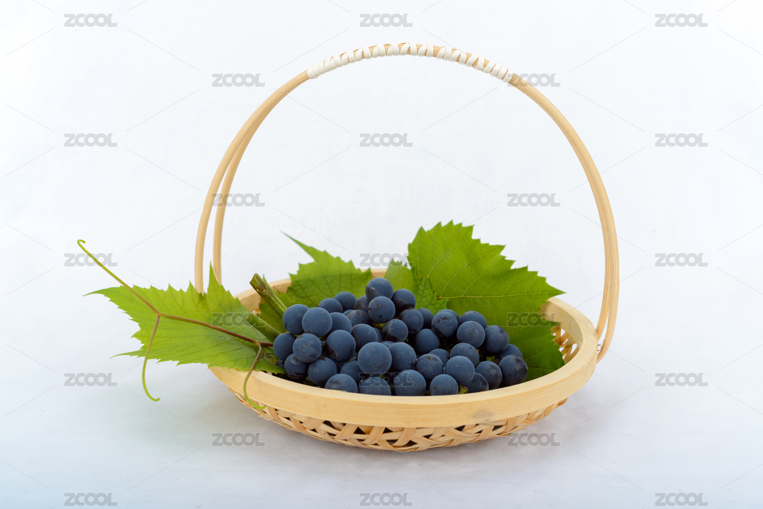 白色背景下竹籃里的葡萄