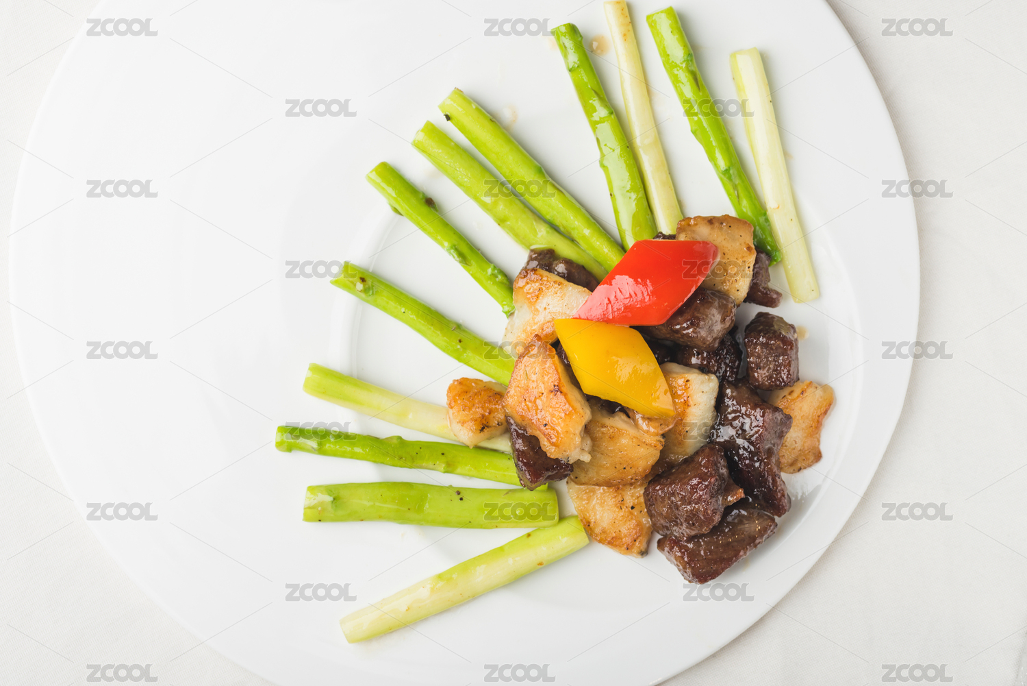 深海鱈魚爆黑椒牛肉粒配蘆筍