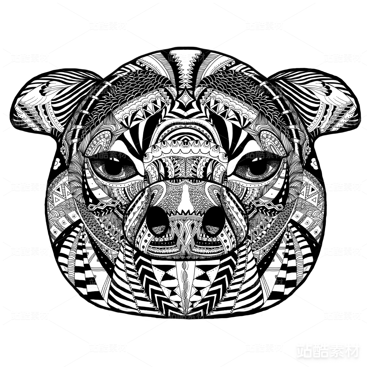 國寶大熊貓白色背景嘴里沒煙斗