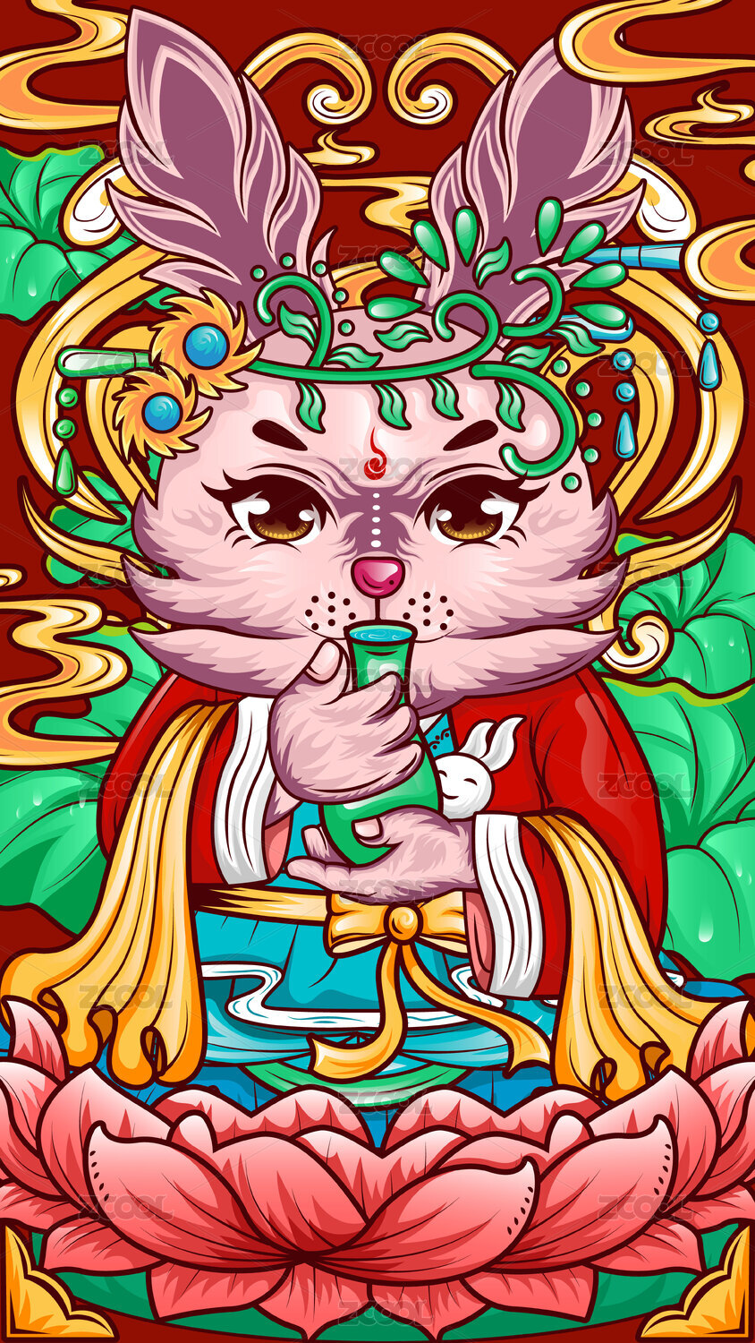 國潮仙女兔送福矢量手機殼