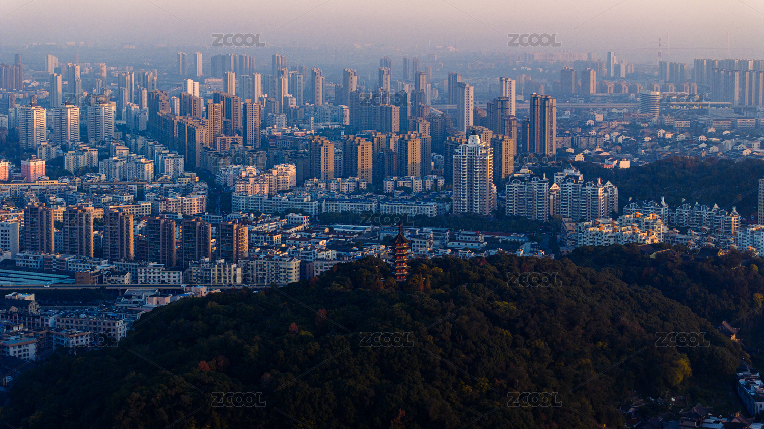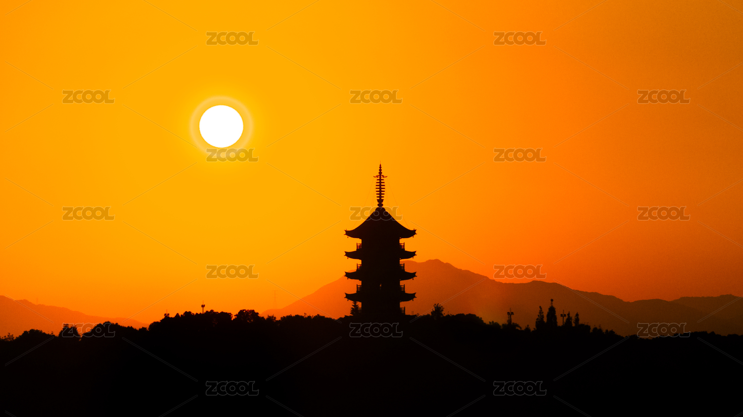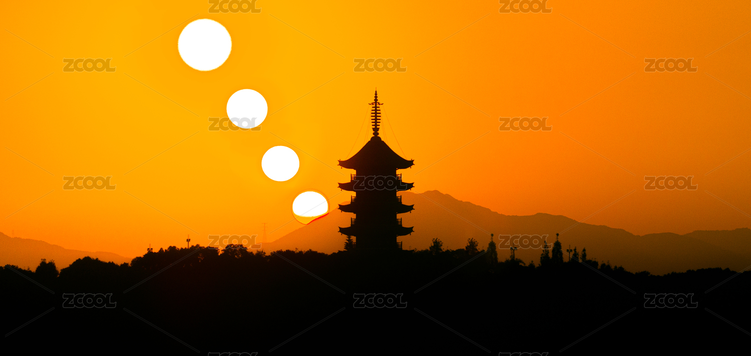 中國溫州瑞安隆山塔日落
