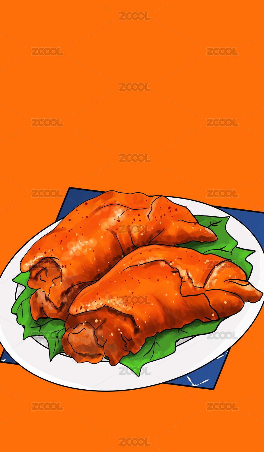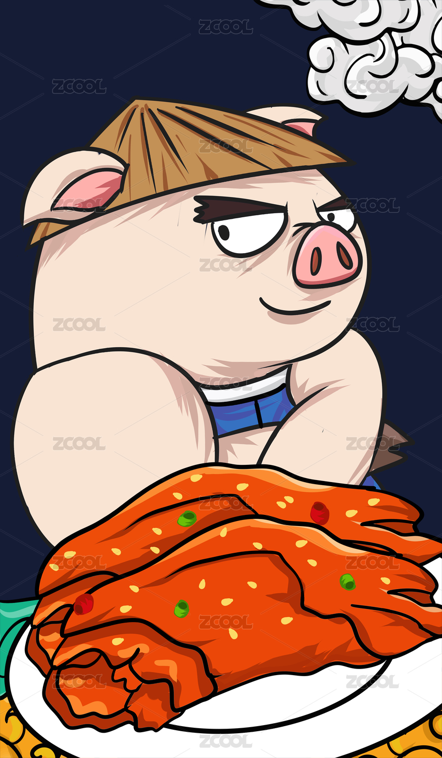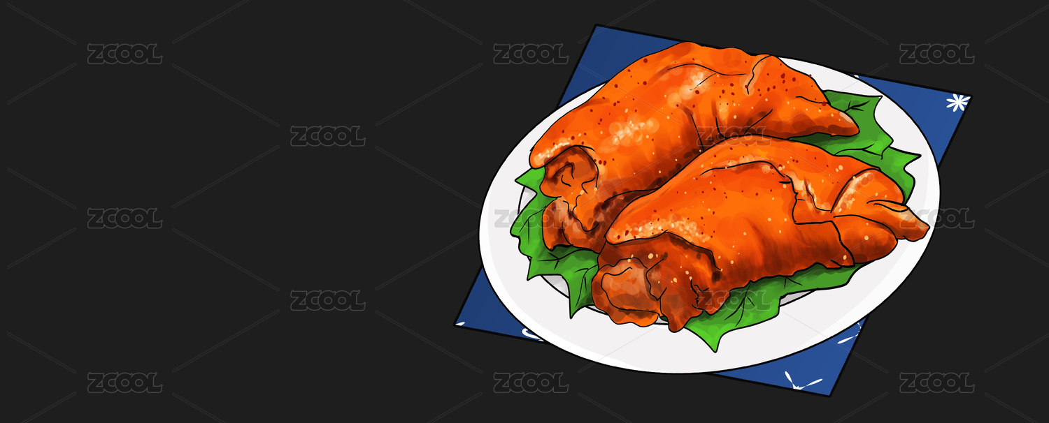 原創(chuàng)手繪卡通美味的烤豬蹄插畫海報素材