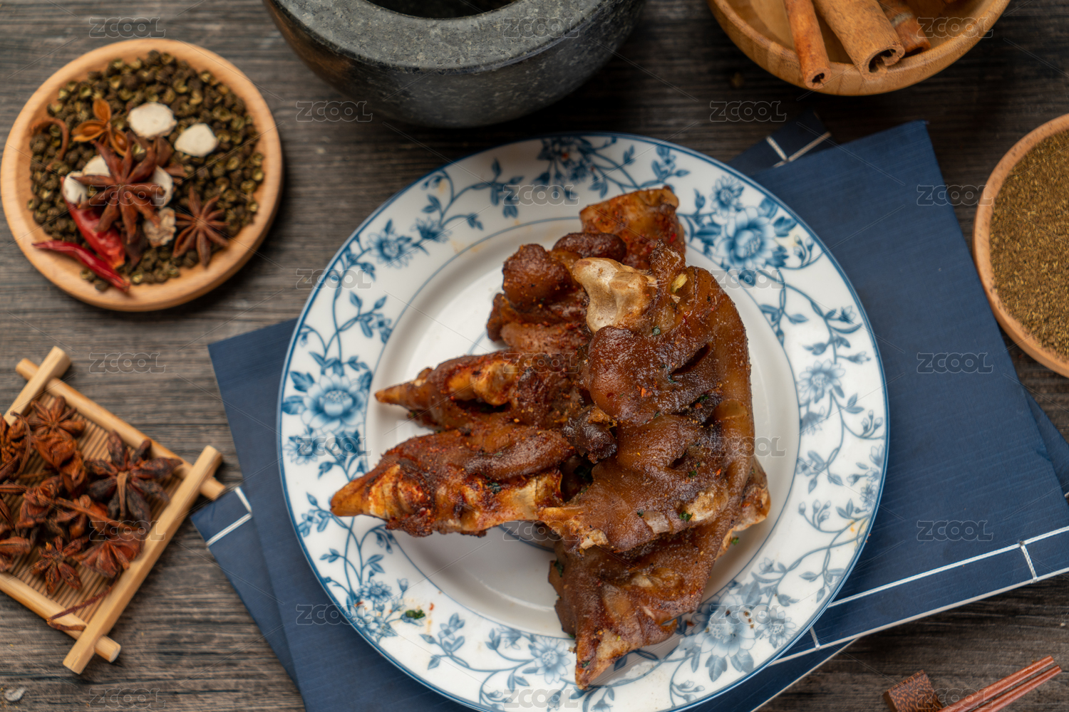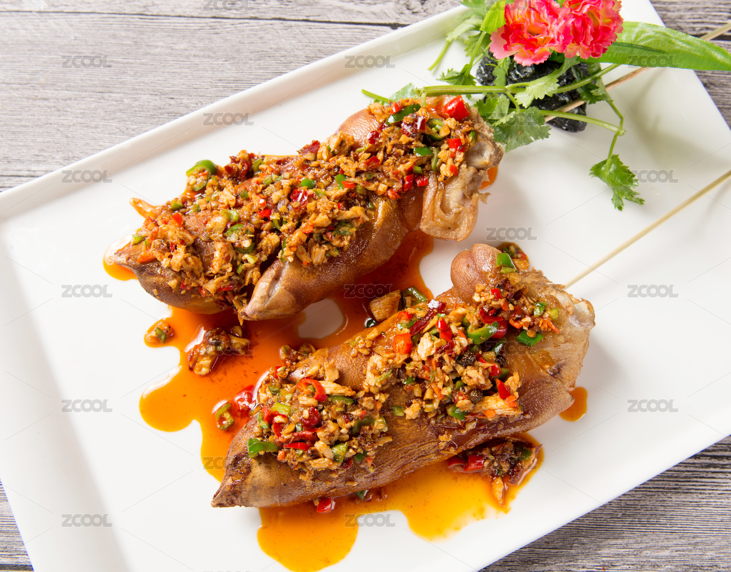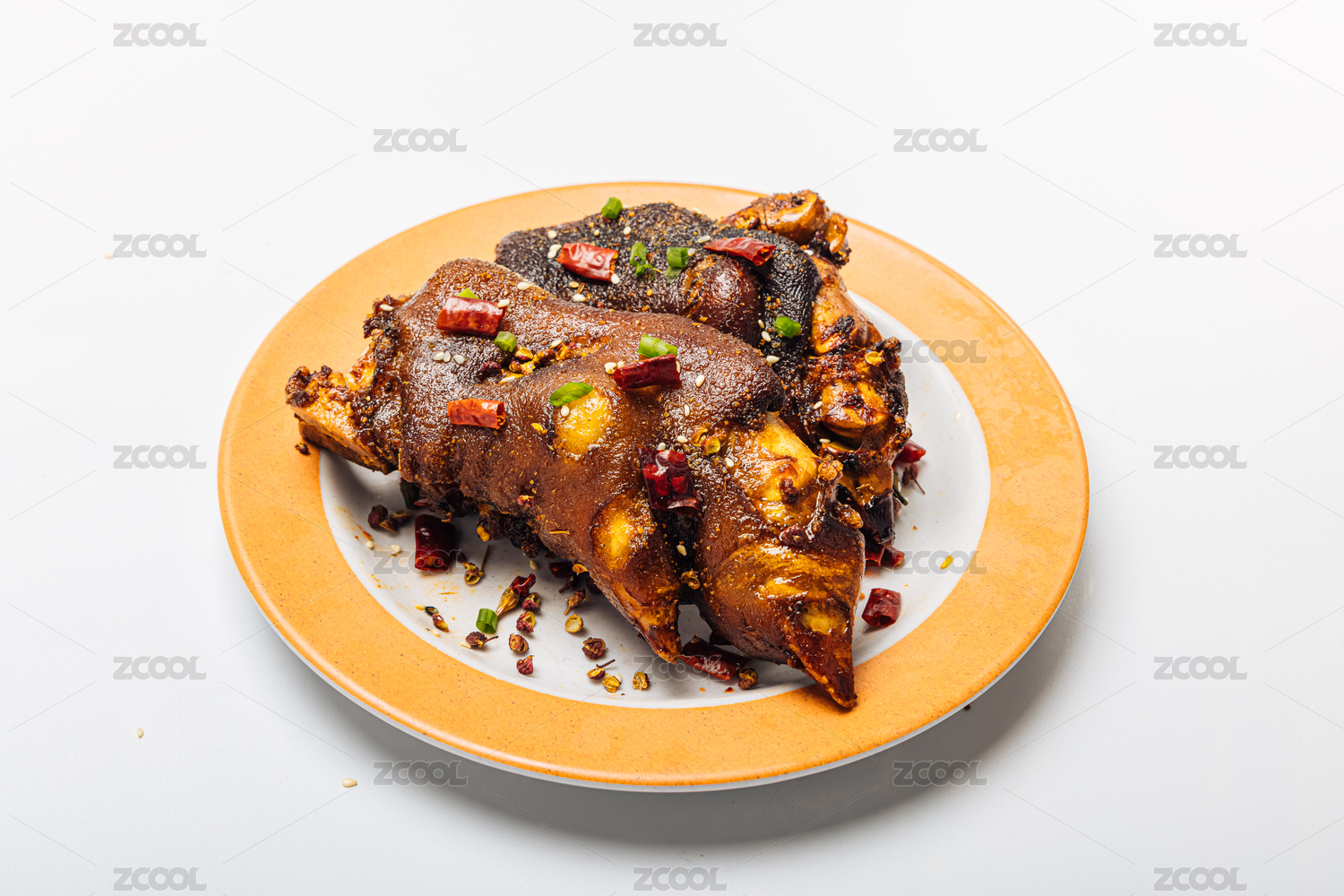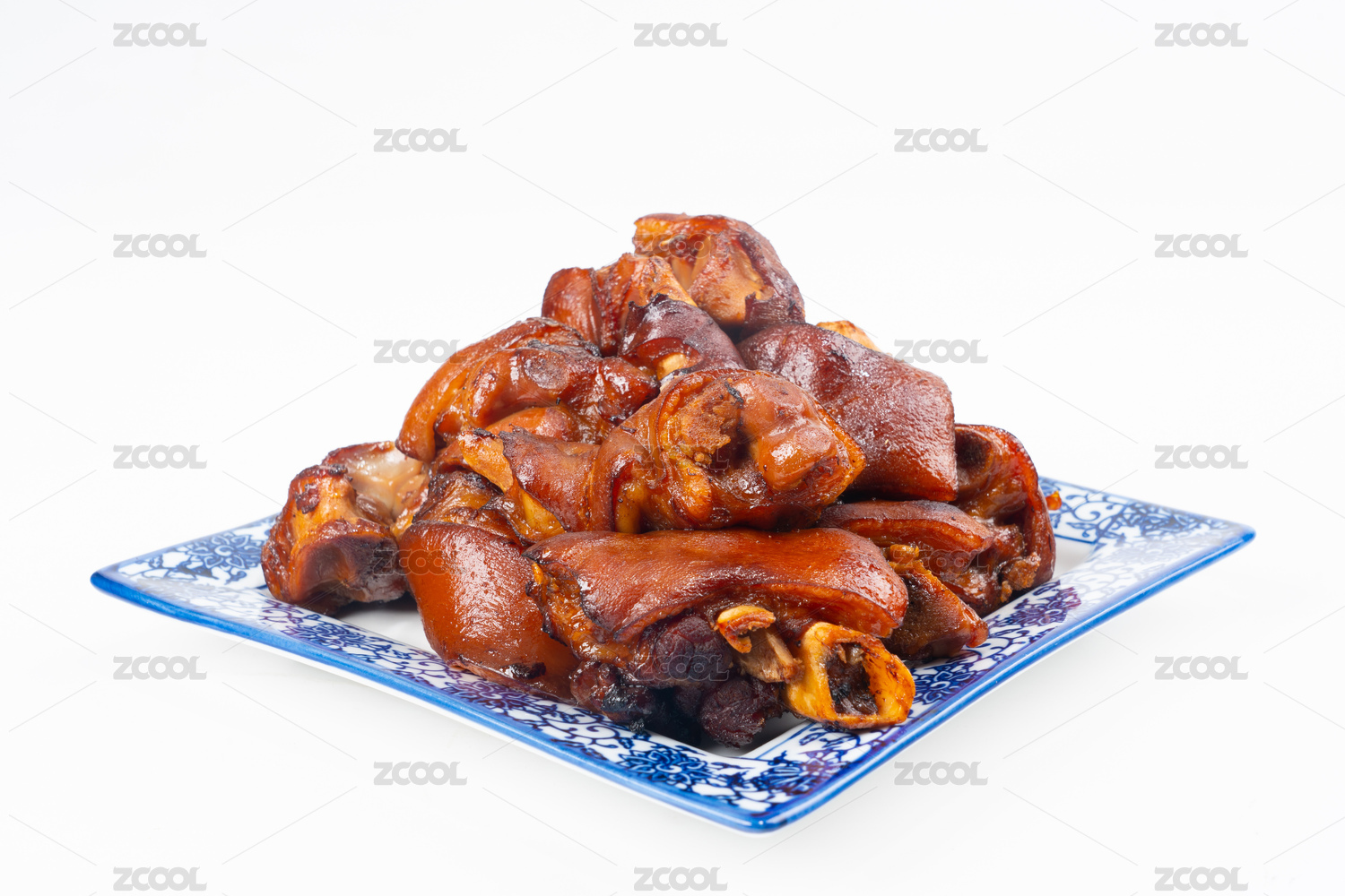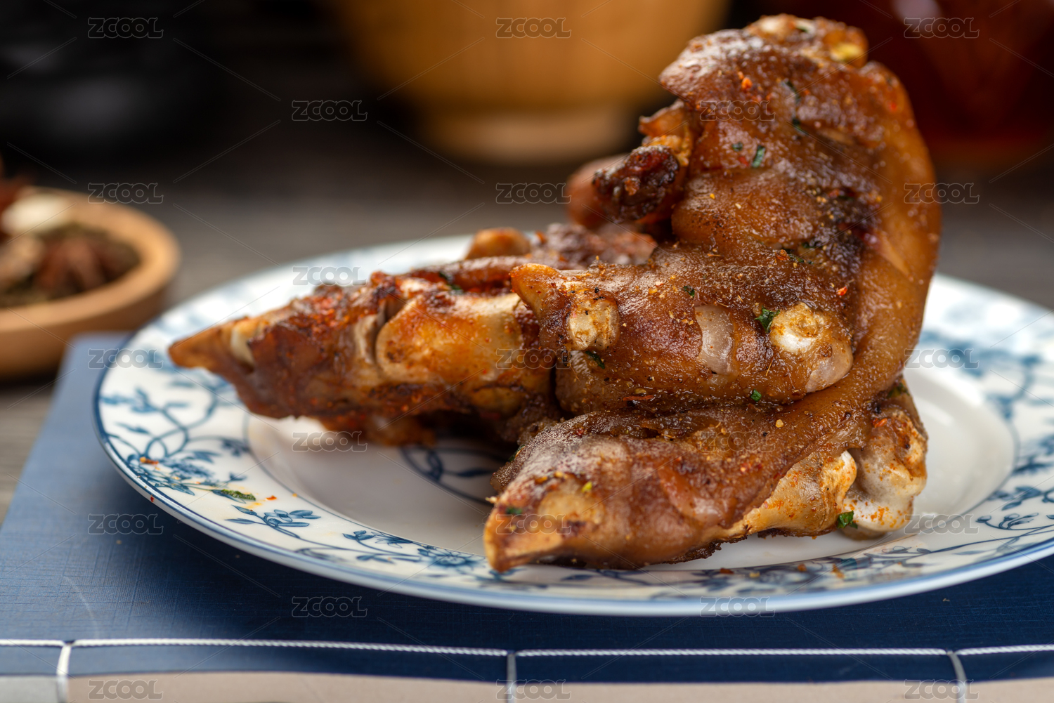 放在盤子里的香辣烤豬蹄