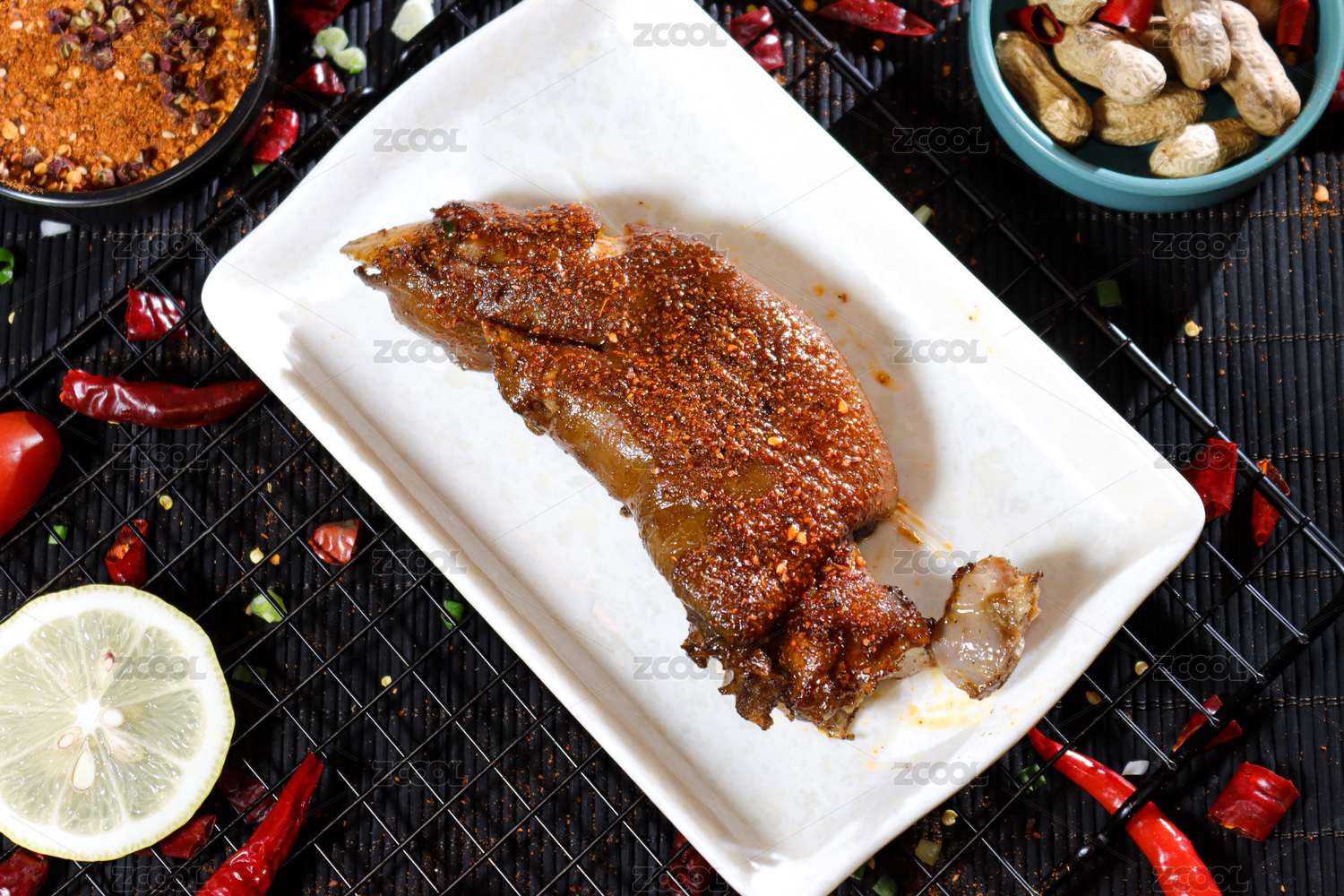 傣族美食香辣烤豬蹄特寫