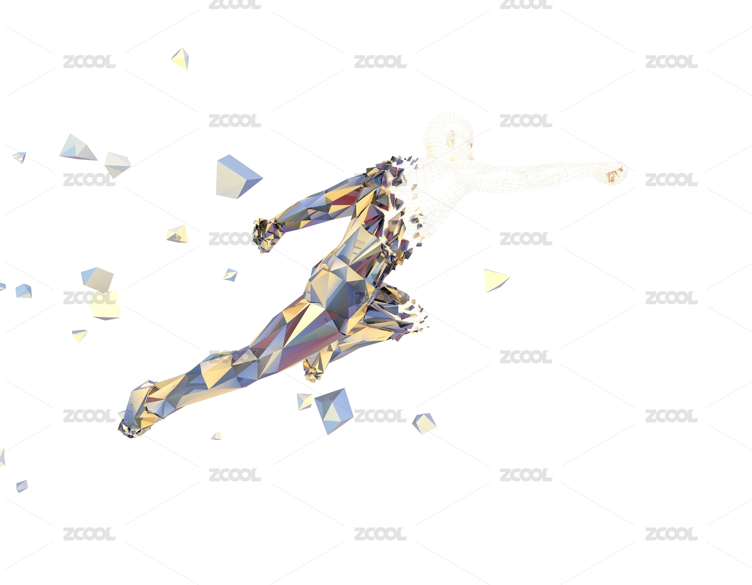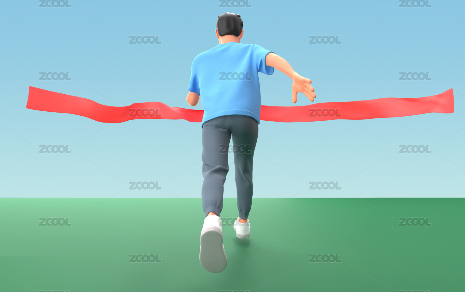 穿藍(lán)色T恤的3D跑步青年沖破紅色終點(diǎn)線