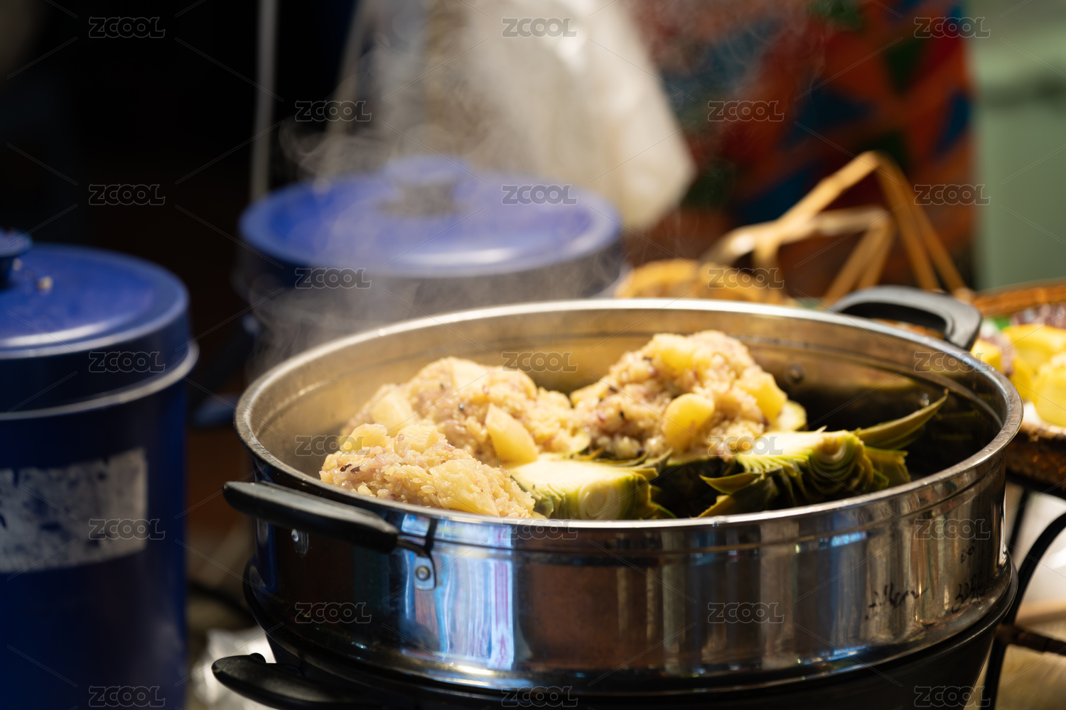 鍋里蒸的菠蘿飯