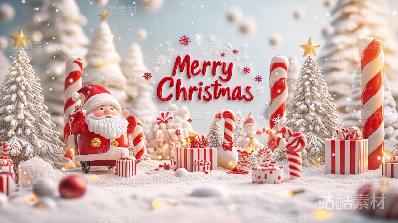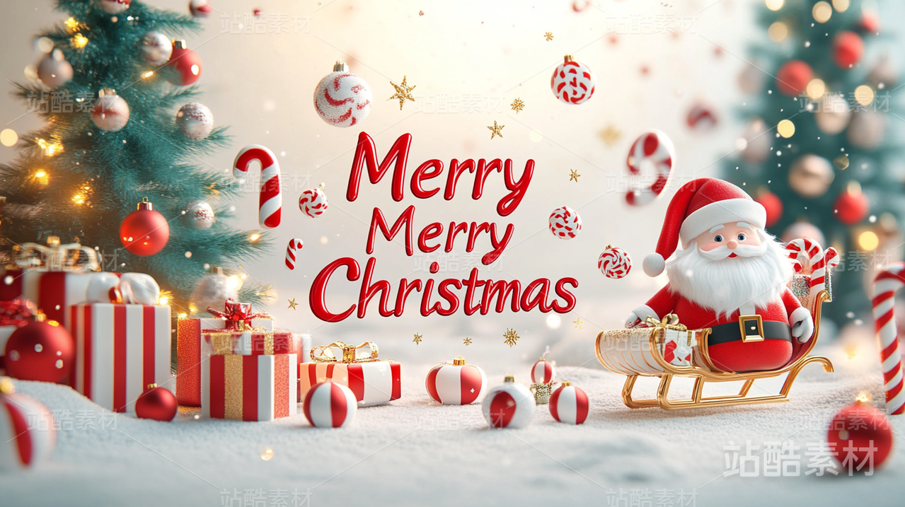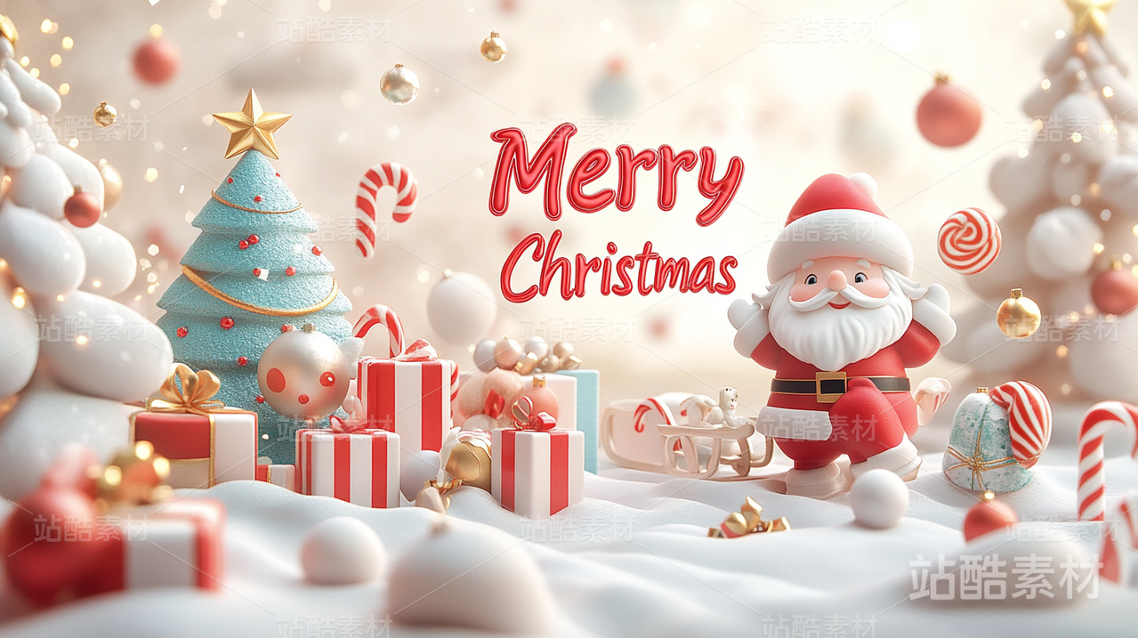 圣誕節(jié)紅金 3D 卡通圣誕老人送禮物節(jié)日海報