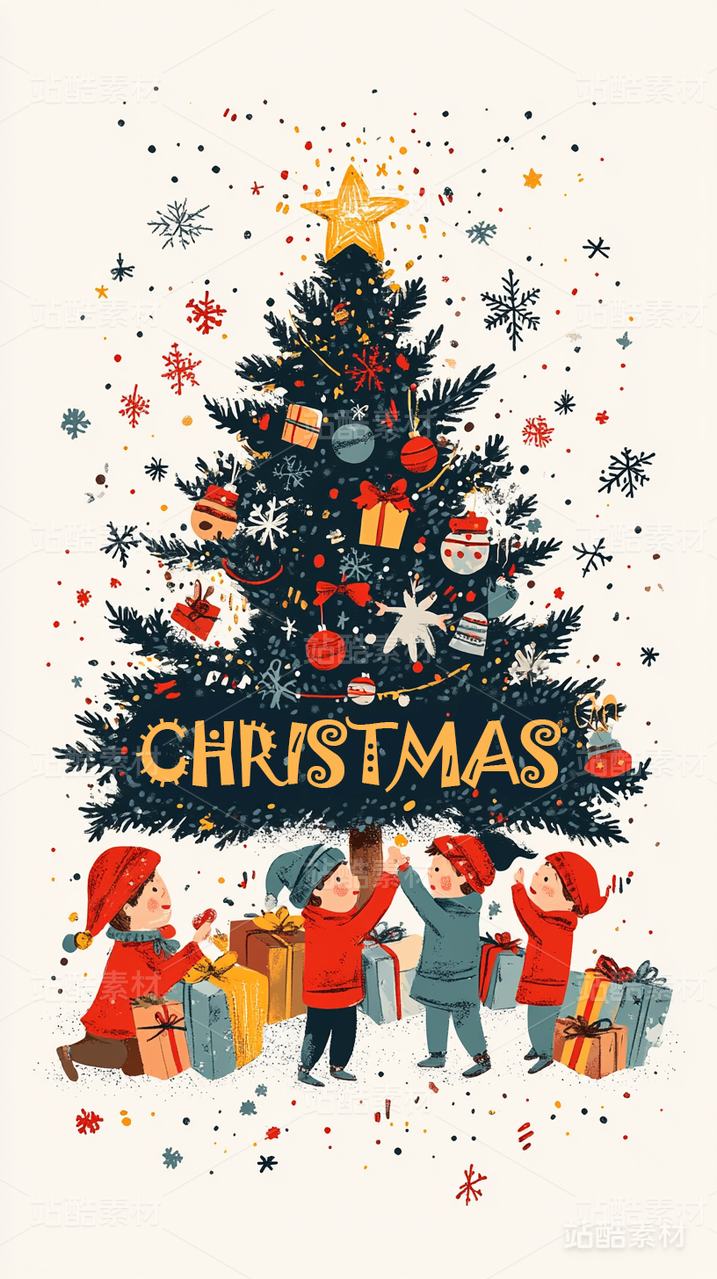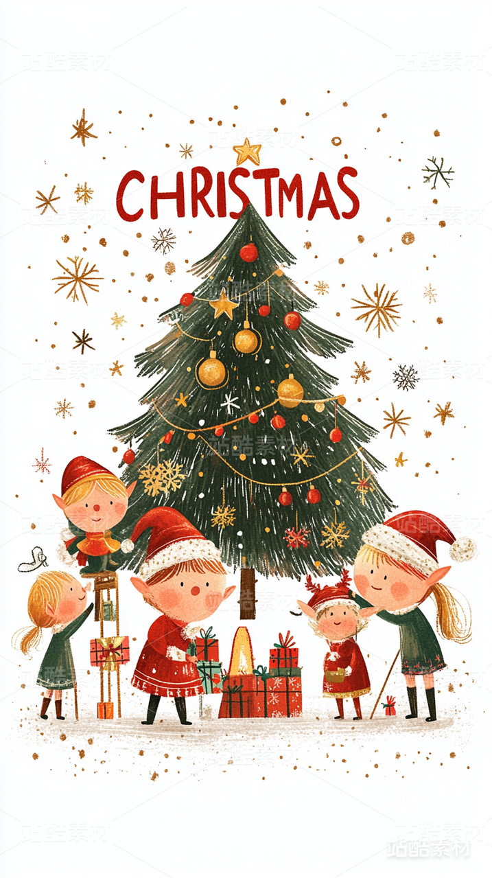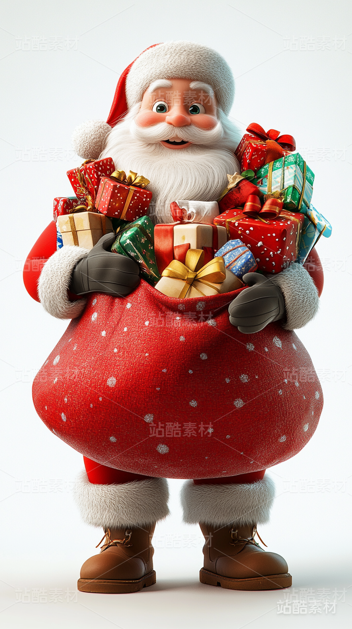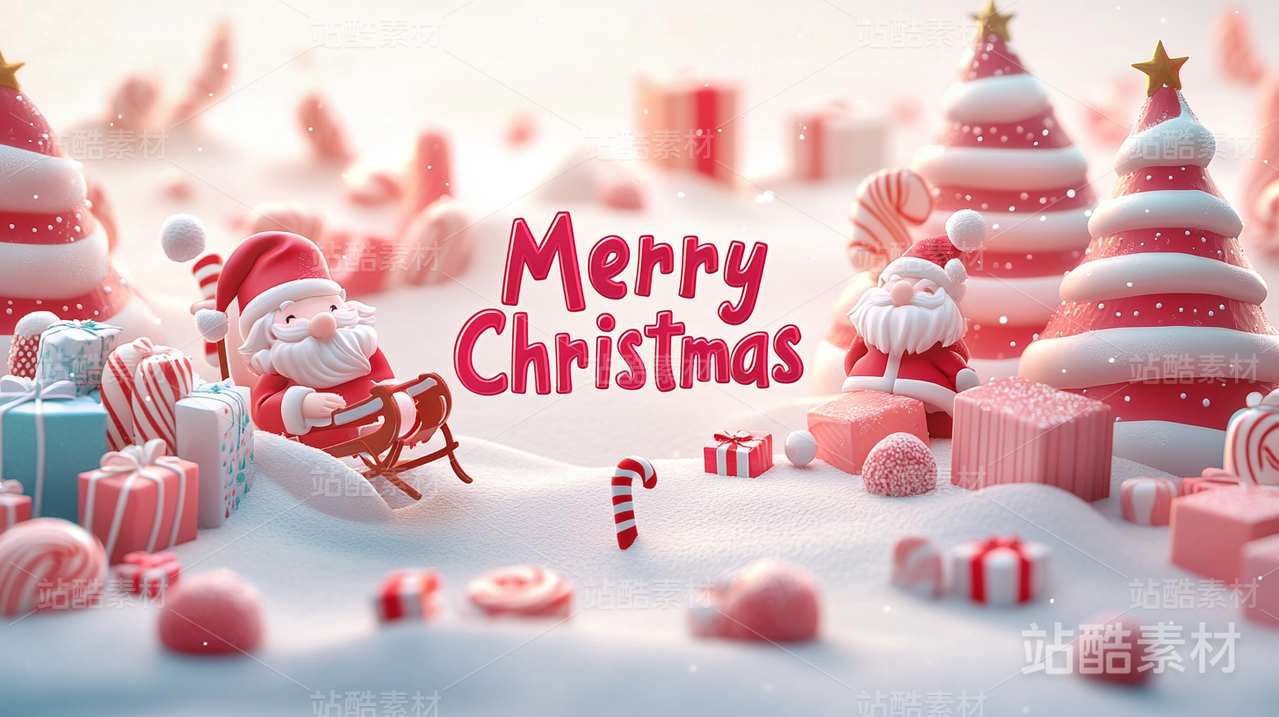 圣誕節(jié)紅金 3D 卡通圣誕老人送禮物節(jié)日海報