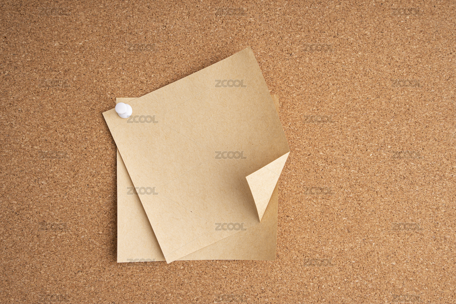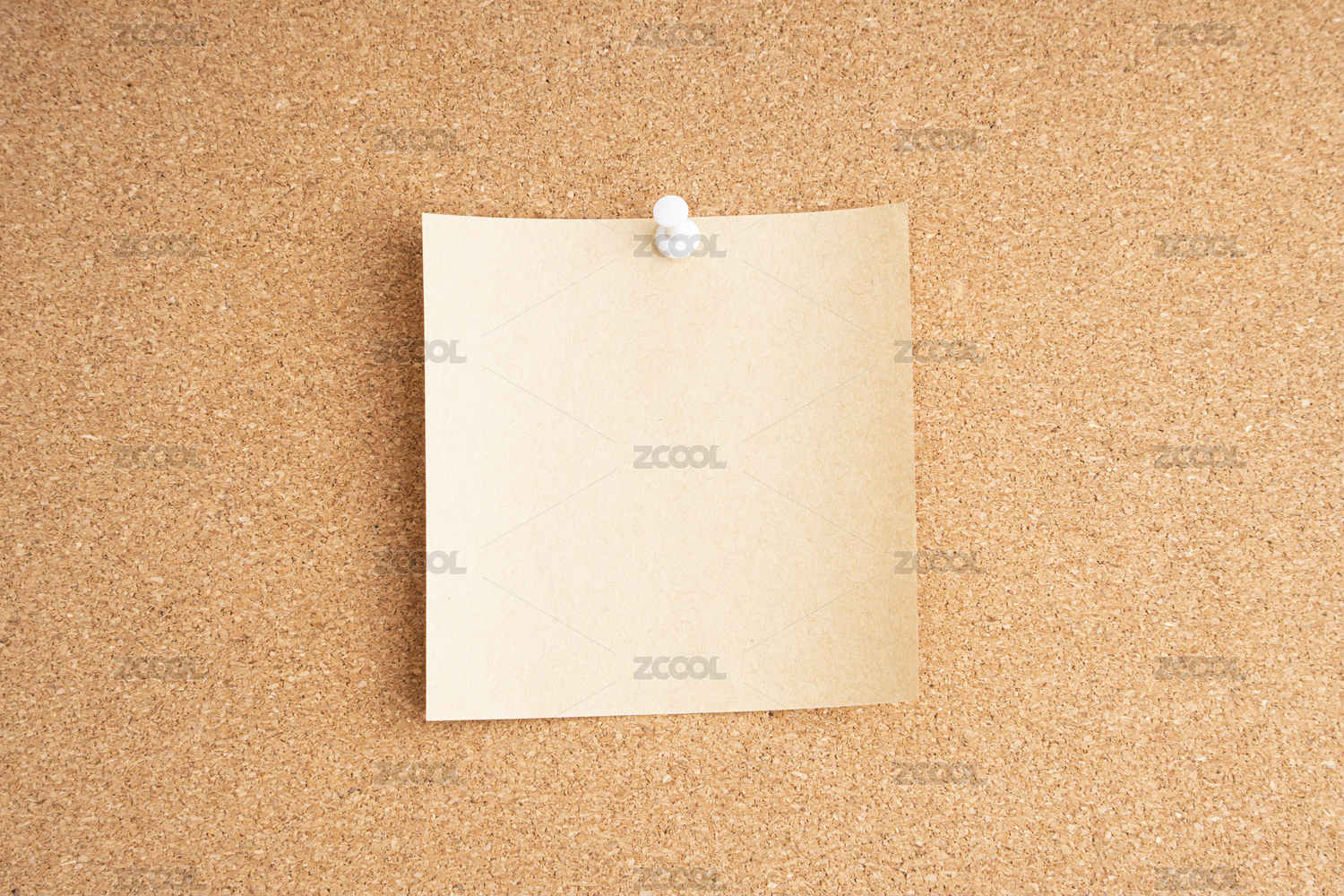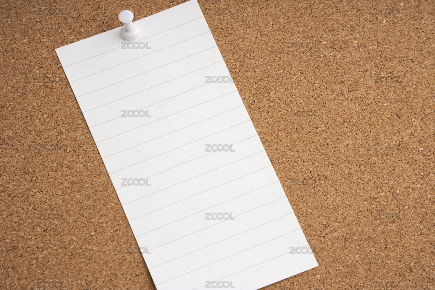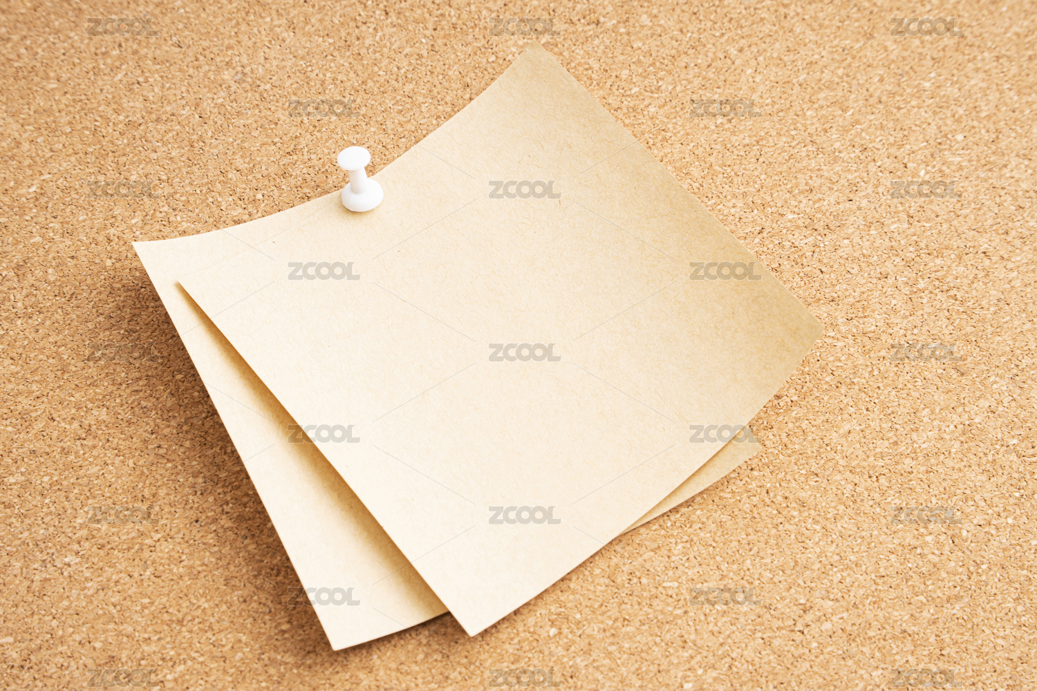 軟木板上的帶著圖釘?shù)谋銞l紙