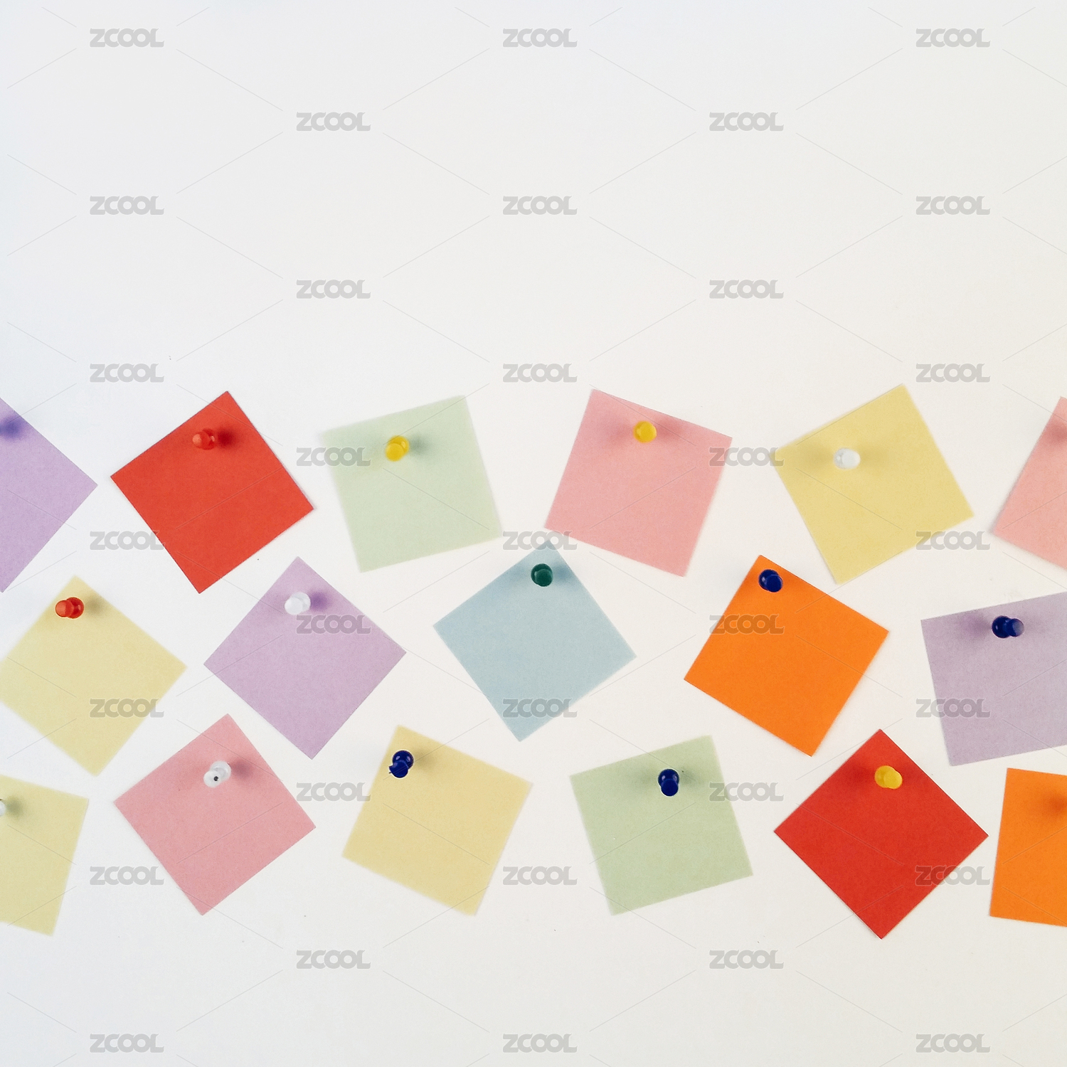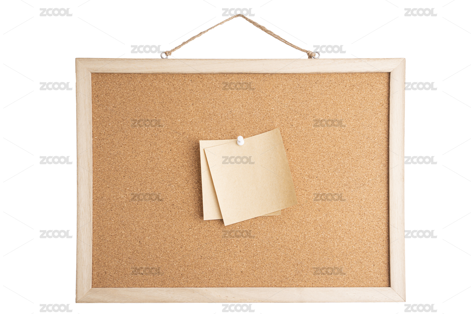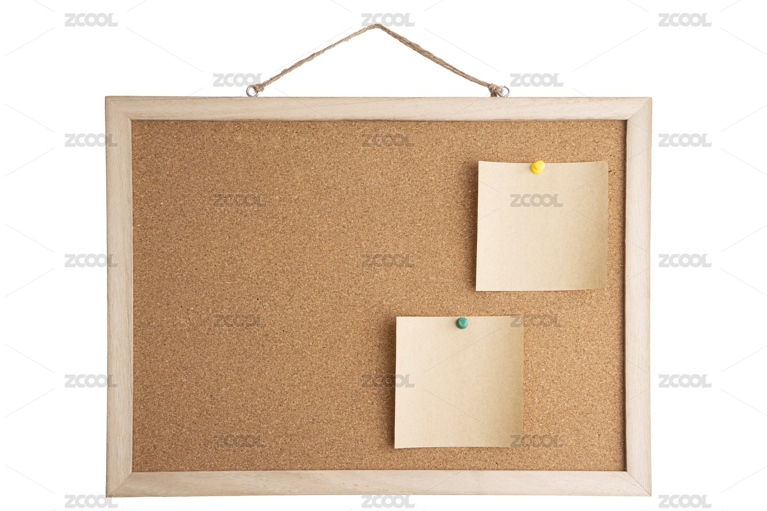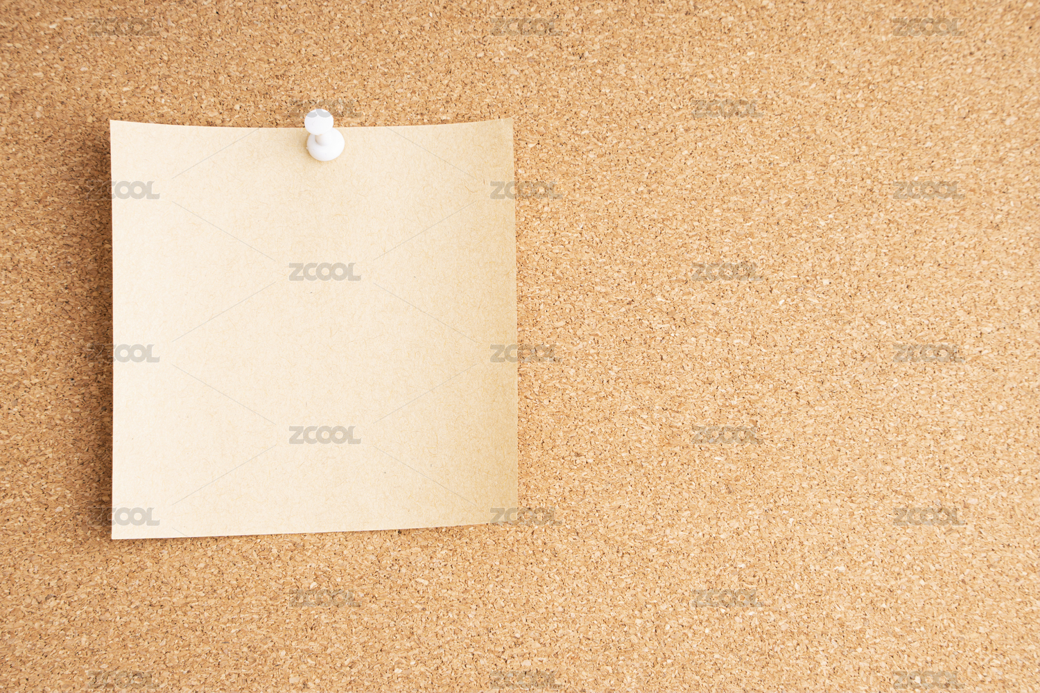 軟木板上的帶著圖釘?shù)谋銞l紙
