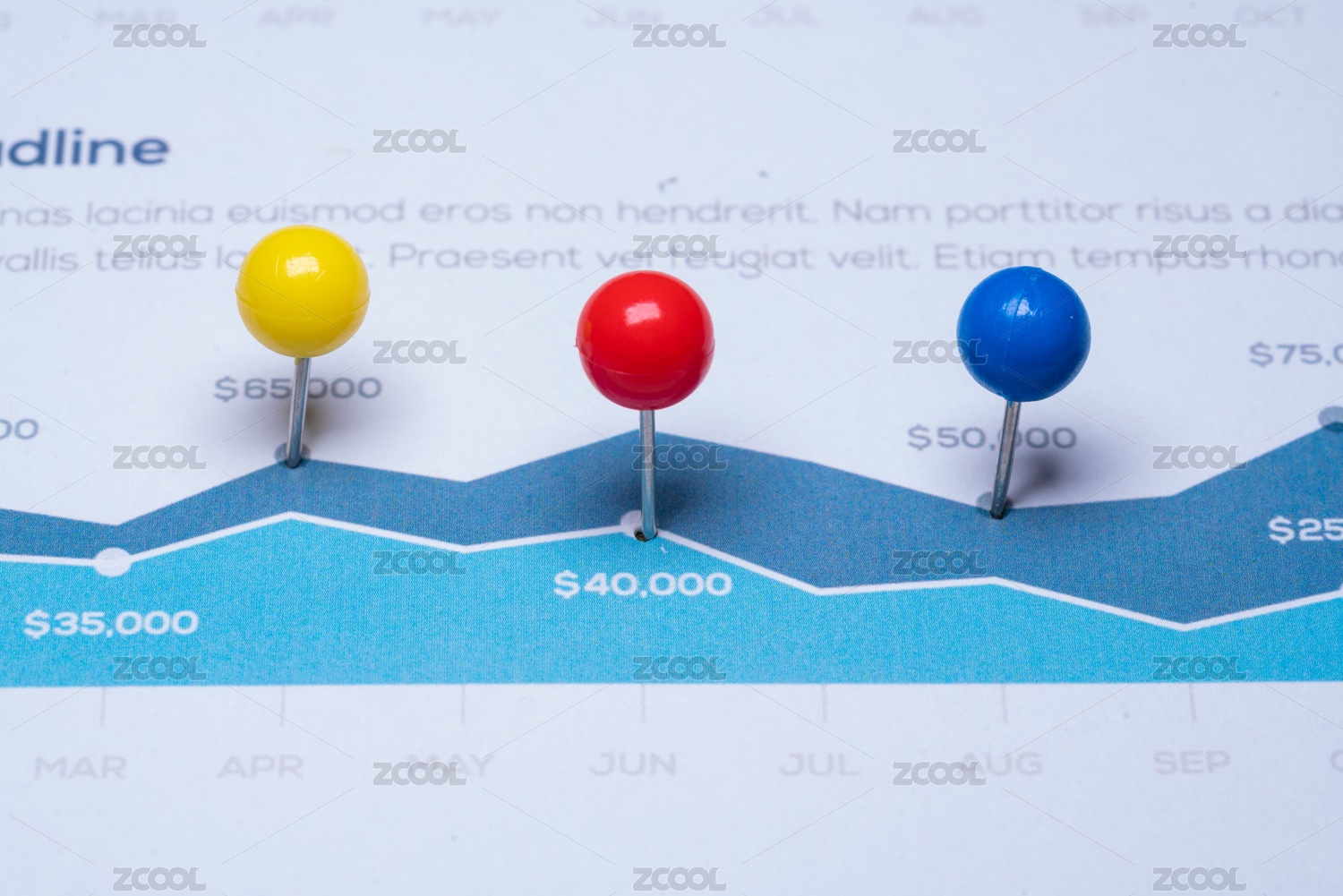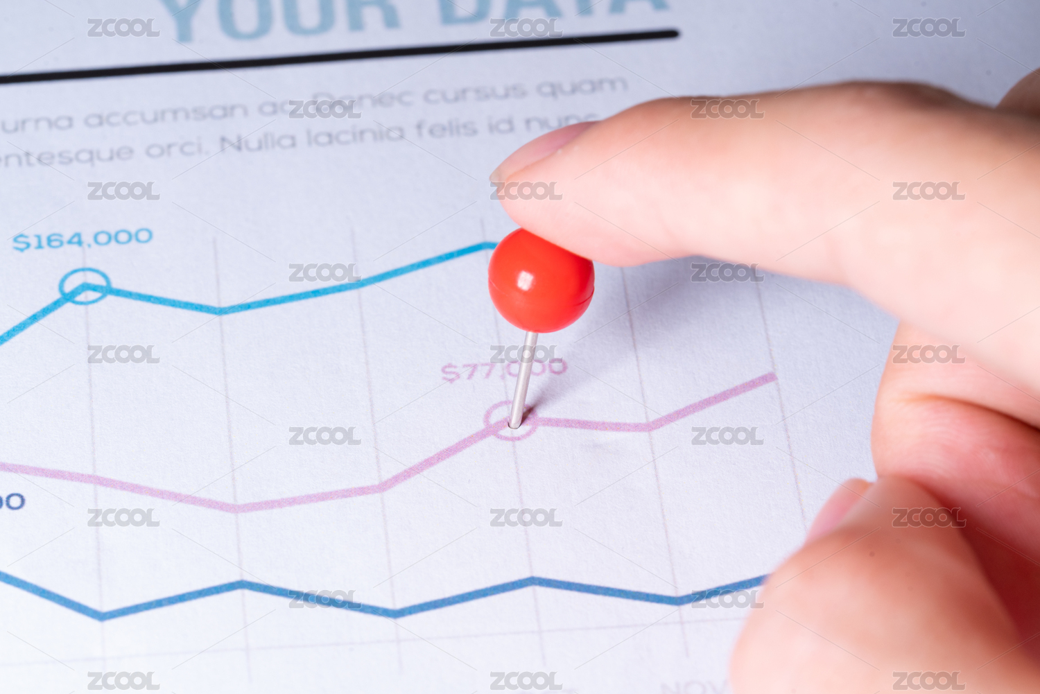 商務(wù)圖表報(bào)表投資時(shí)機(jī)圖釘按下買入賣出選擇
