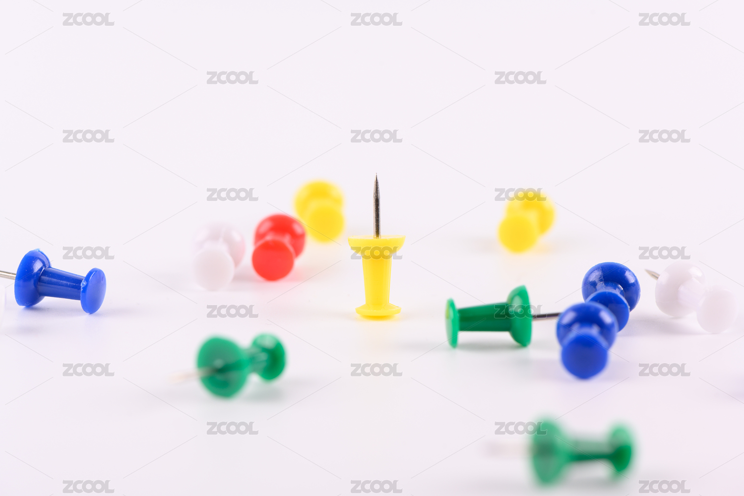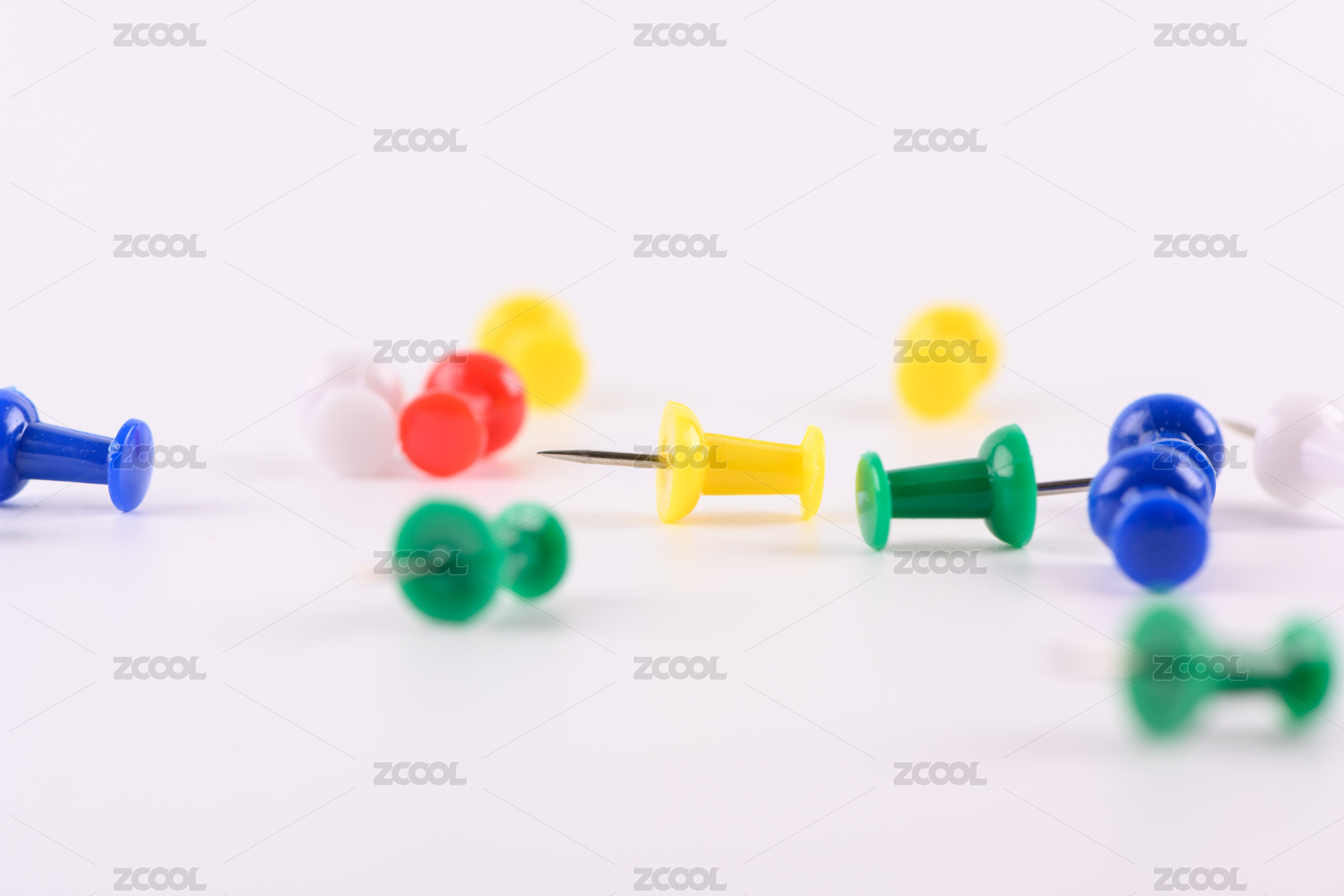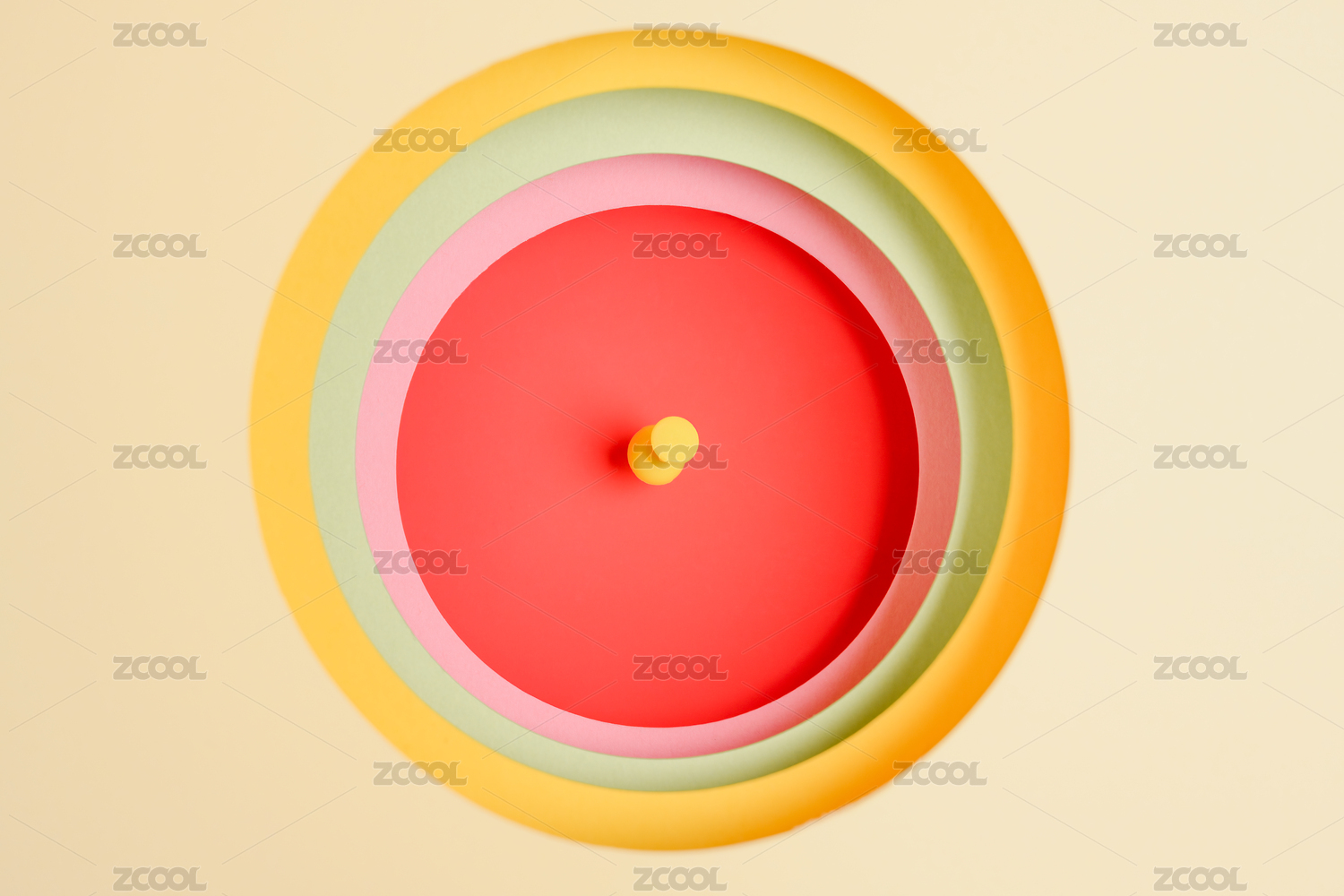 用卡紙疊成的一層一層彩色圓洞中釘著的圖釘