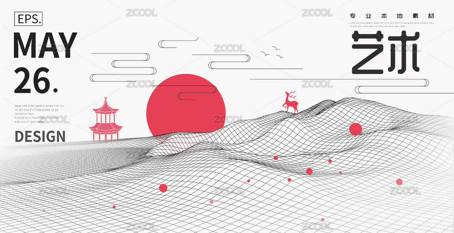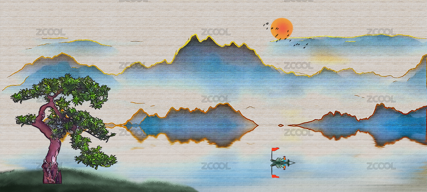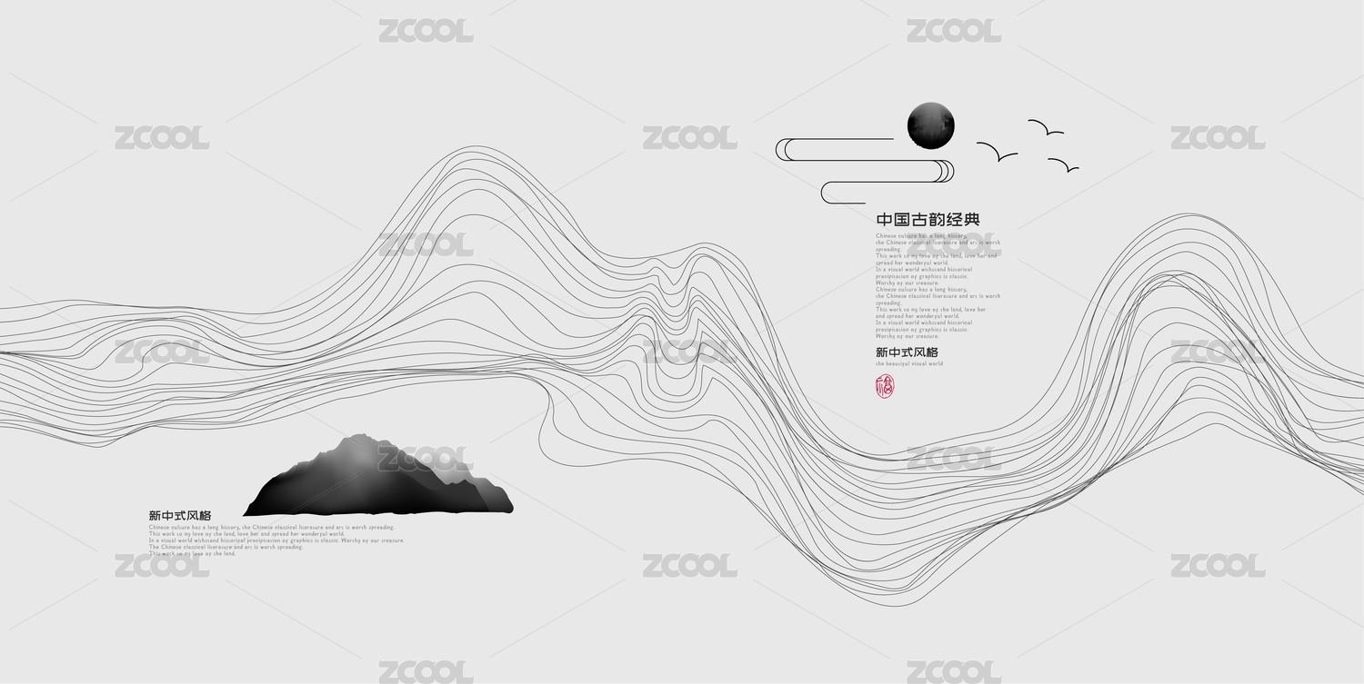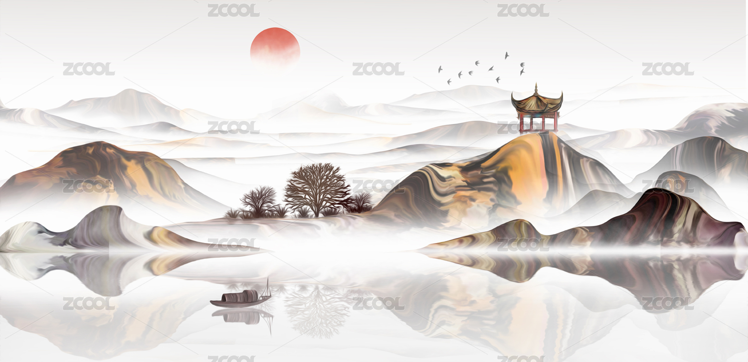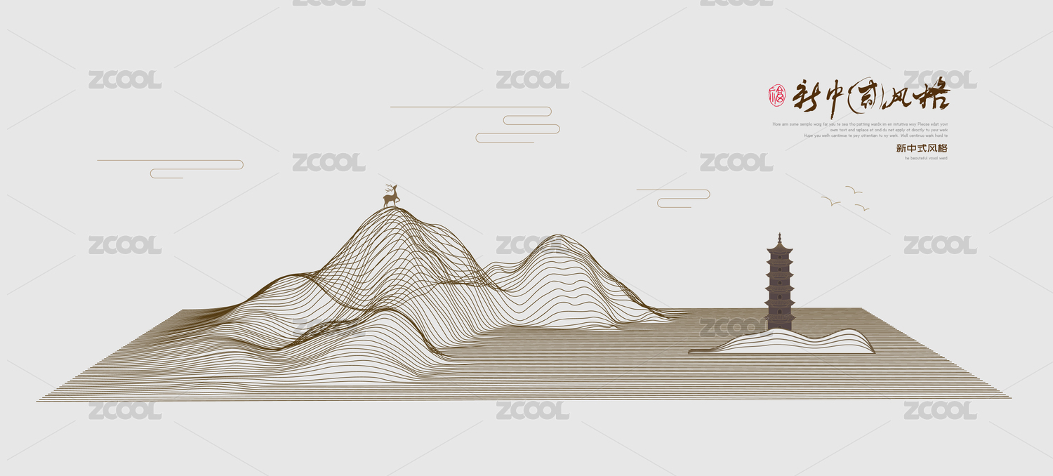 矢量三維抽象線條現(xiàn)代新中式山水畫