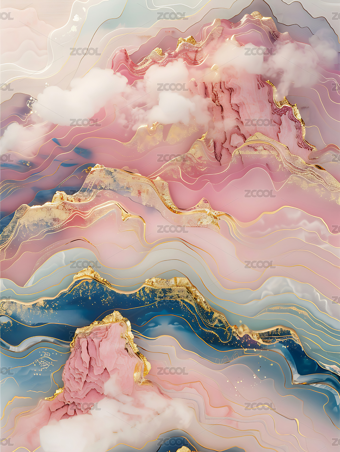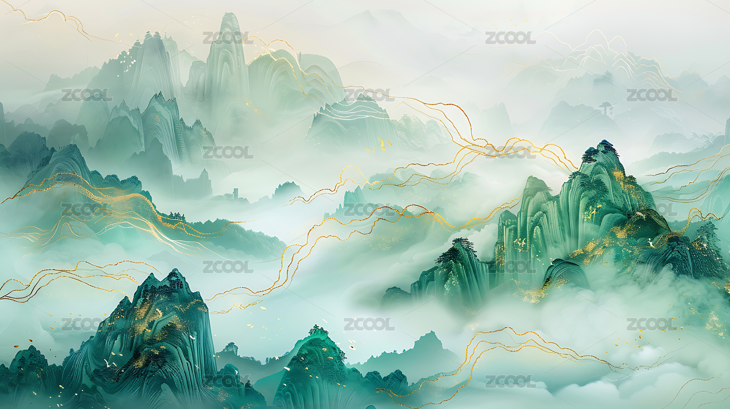 矢量三維抽象藝術(shù)山脈新中式山水畫