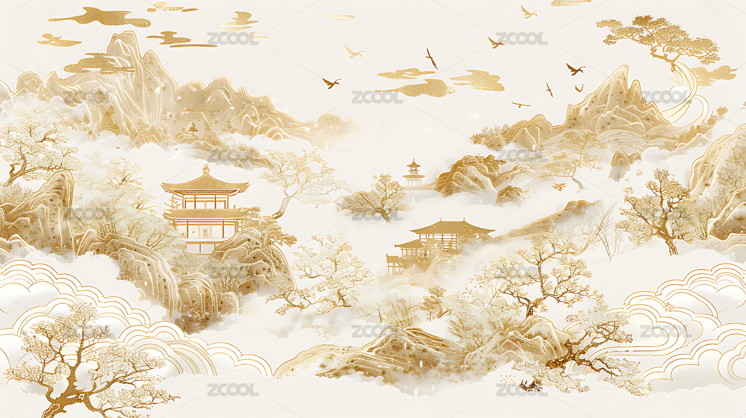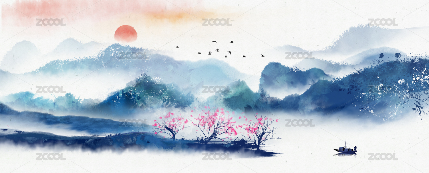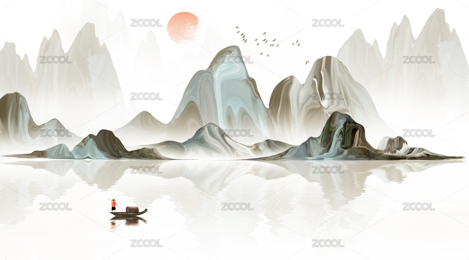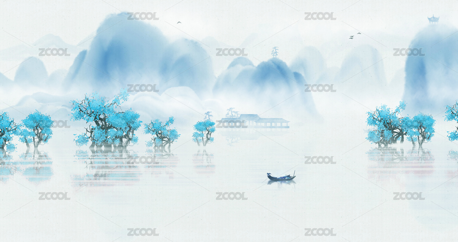 中國(guó)風(fēng)新中式山水水墨裝飾