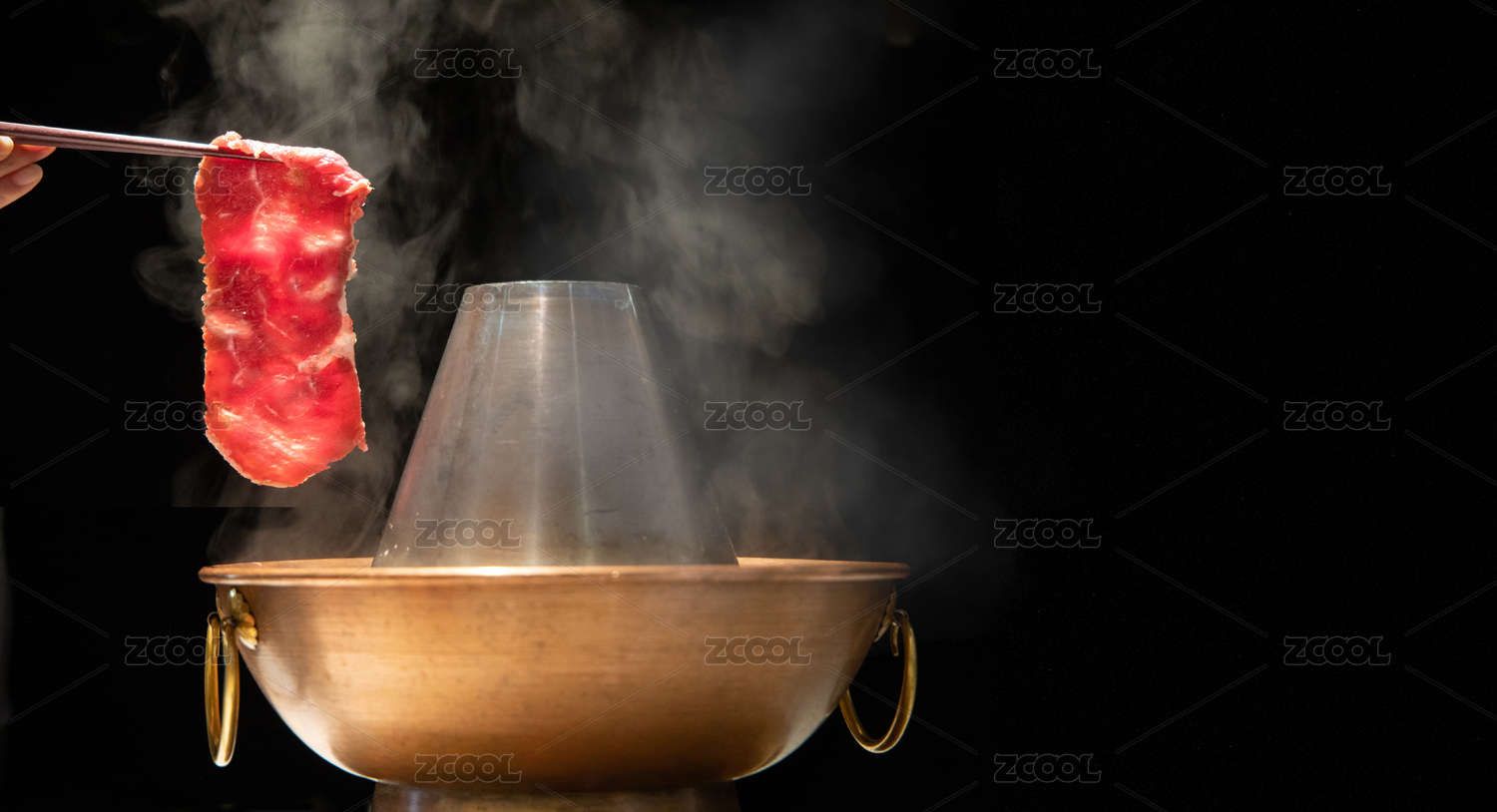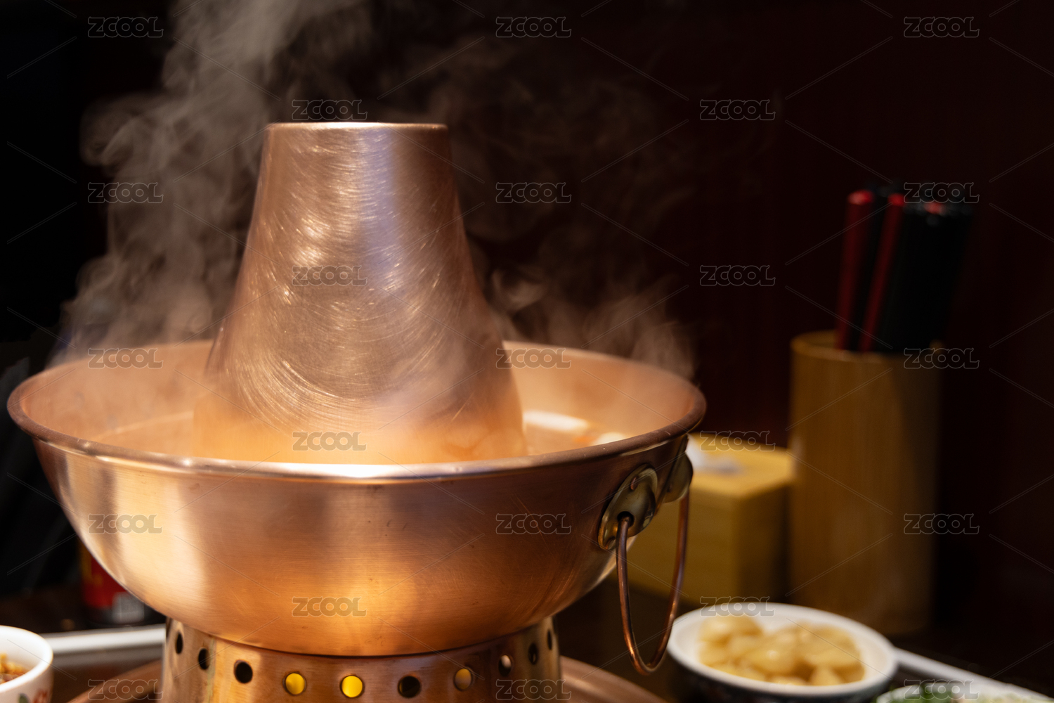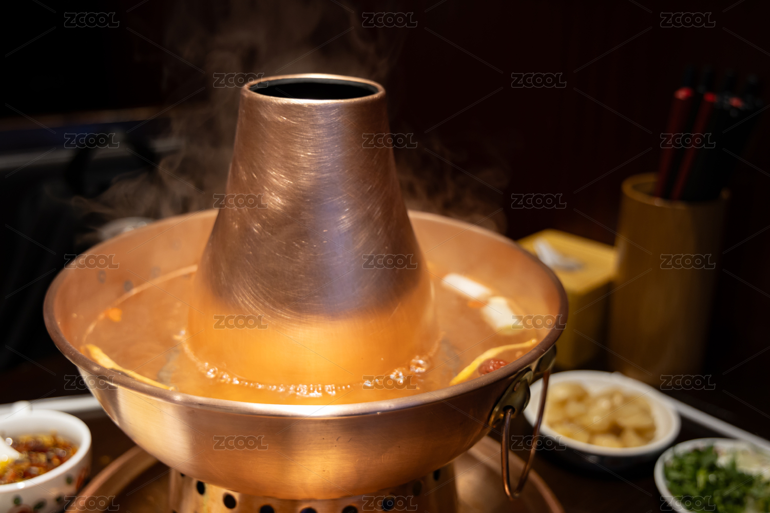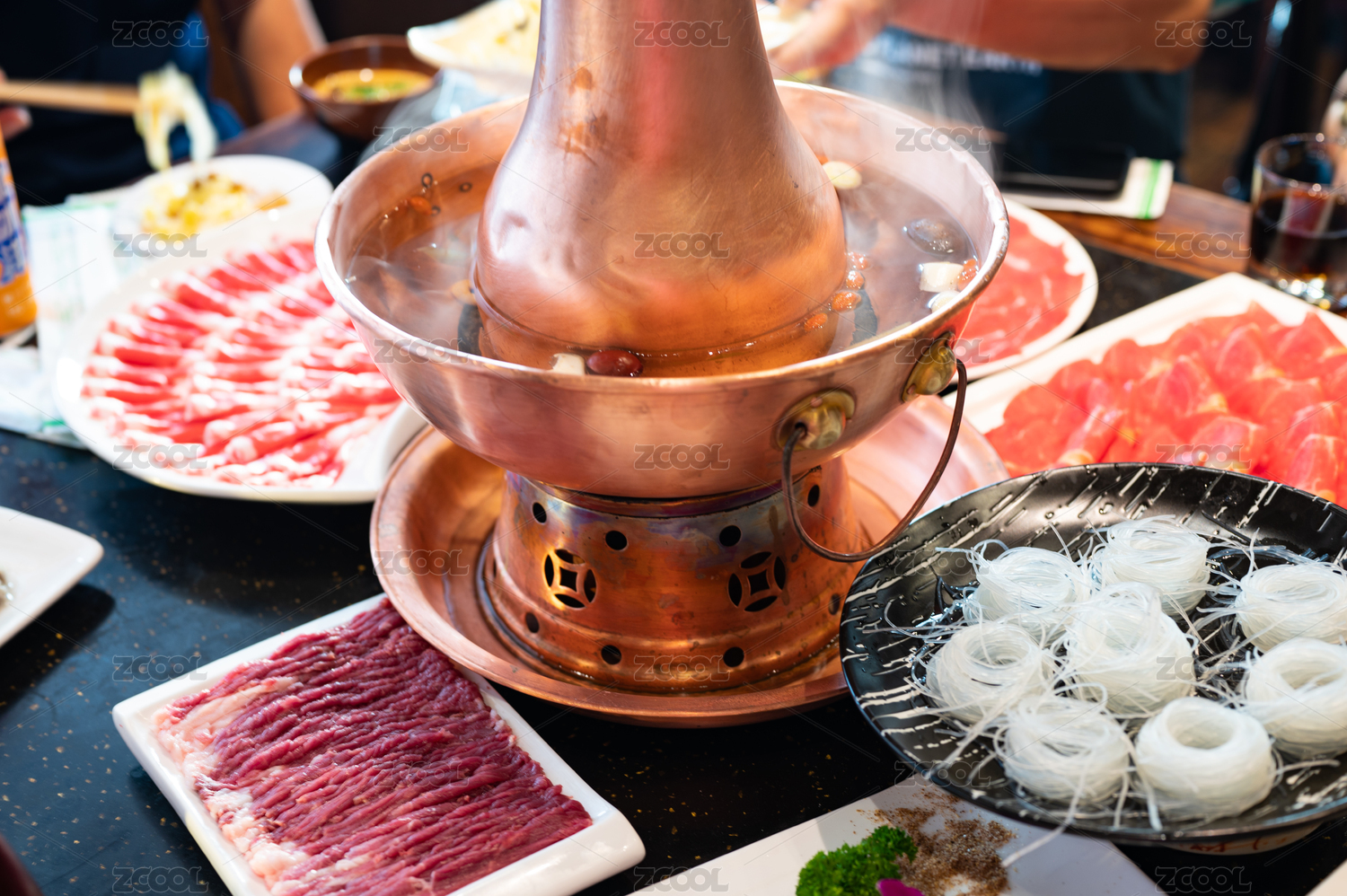 老北京銅鍋涮肉,冒著熱氣的火鍋