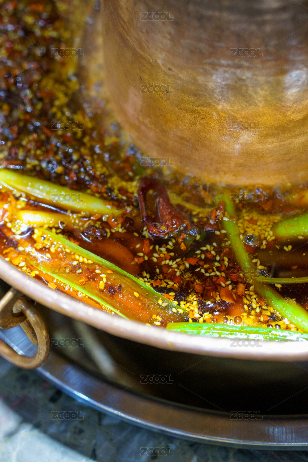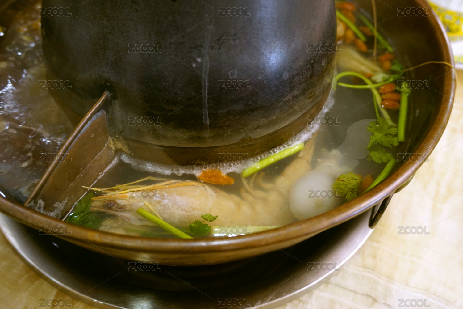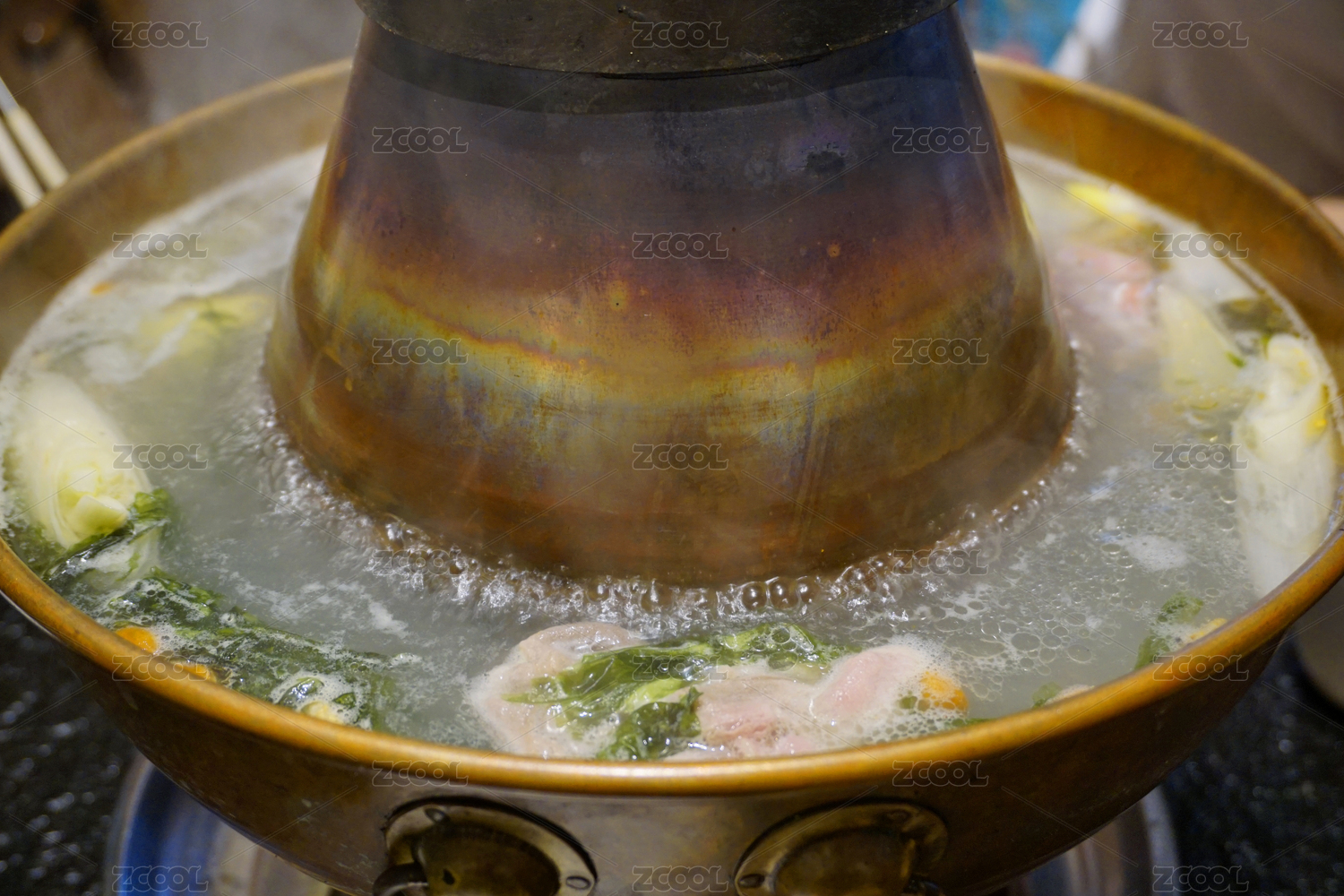 鮮美的大骨湯盛放在銅鍋里面
