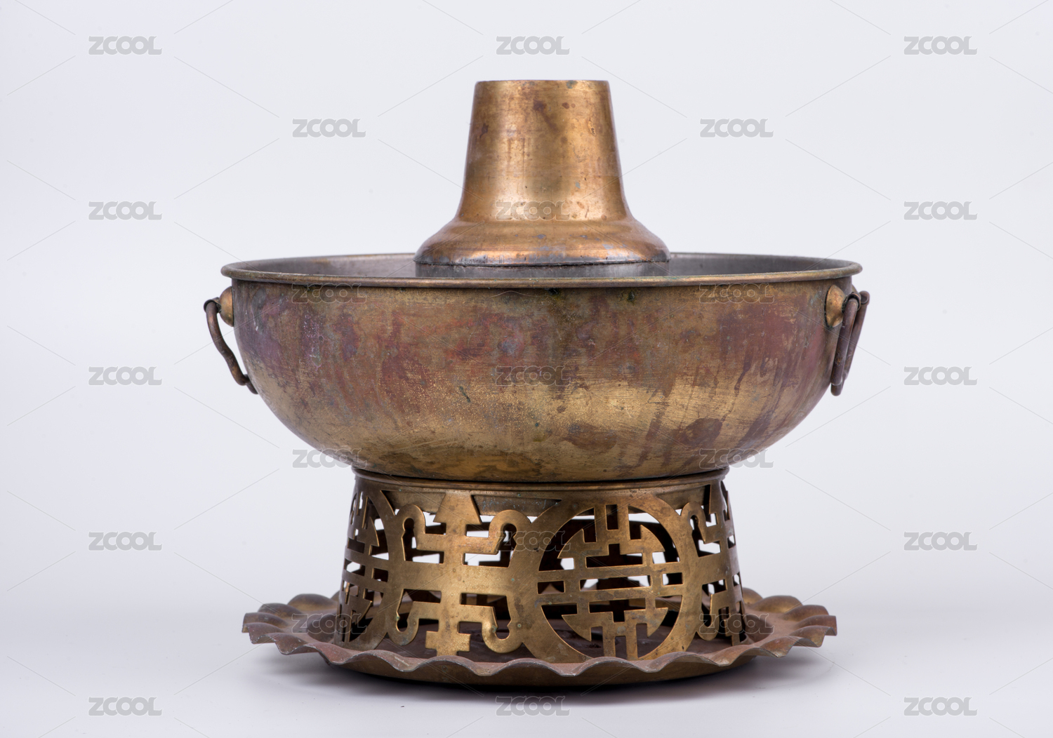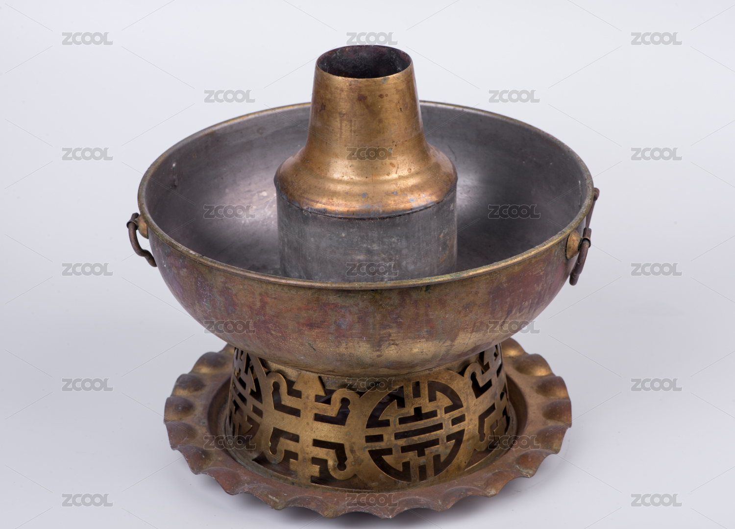 白色背景上的傳統(tǒng)老銅火鍋