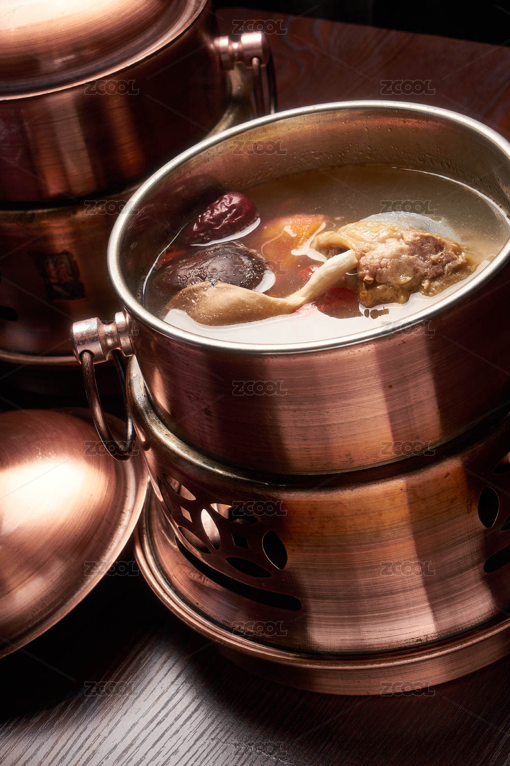 銅鍋燉柴雞湯