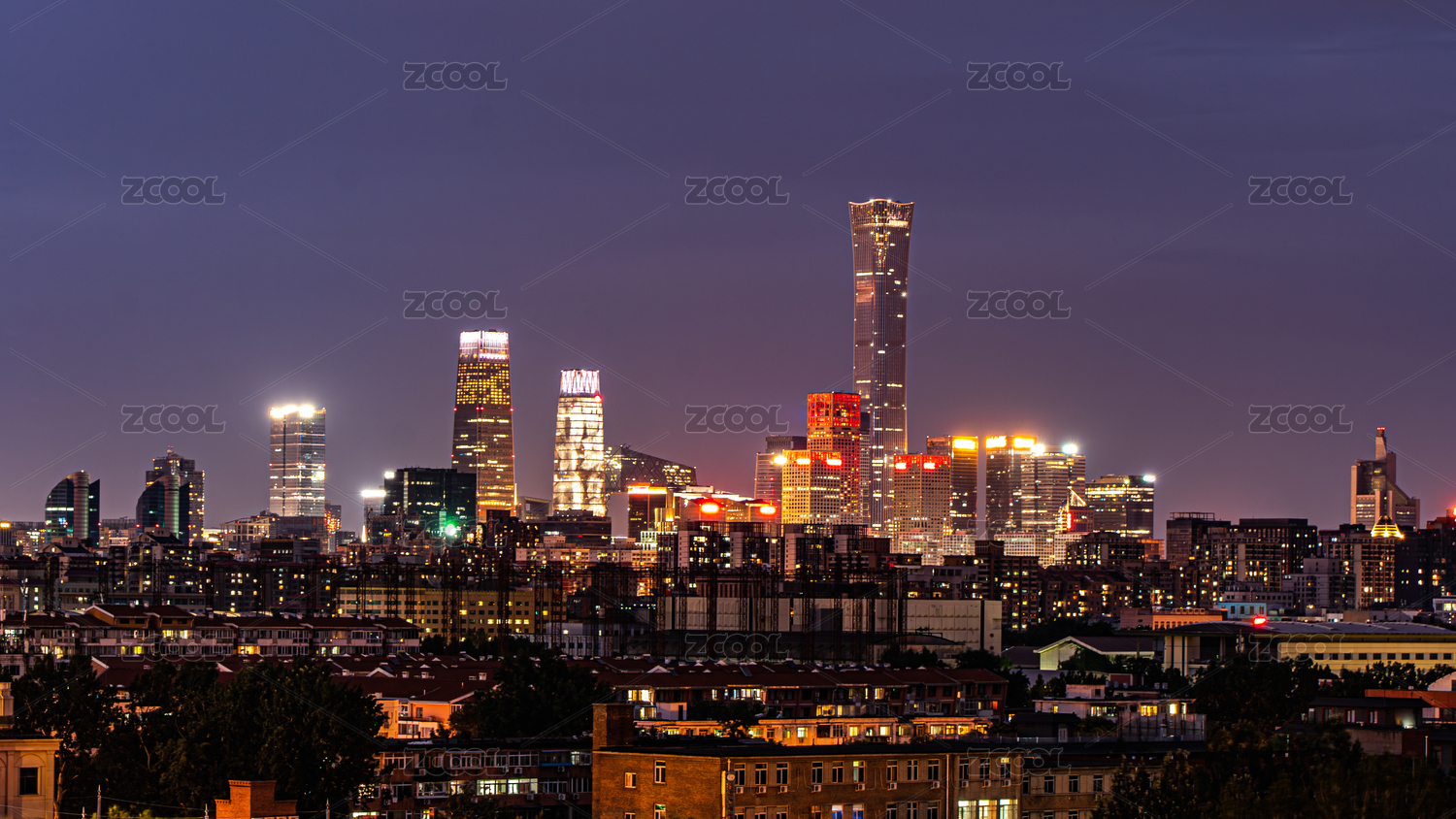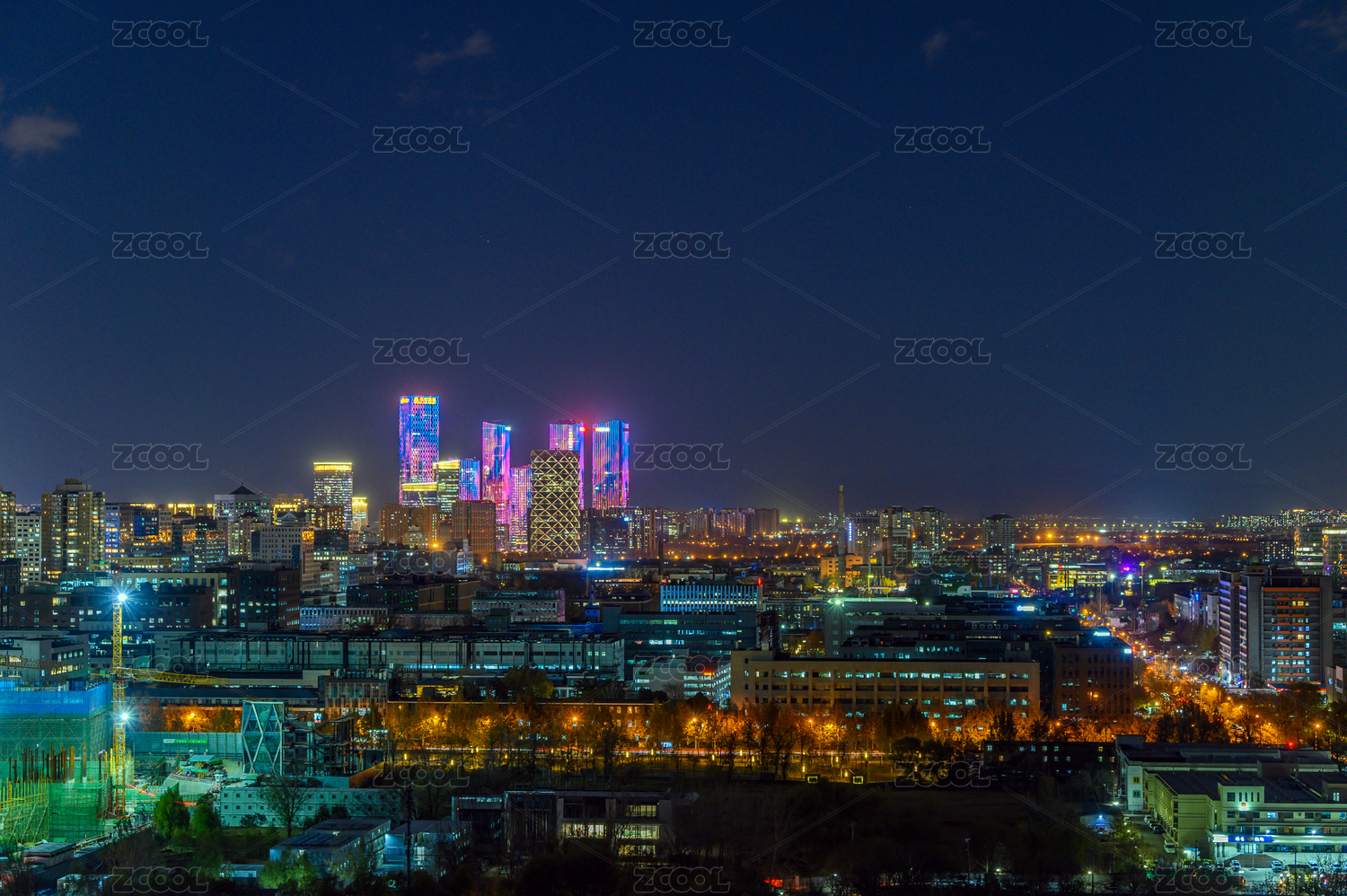 夜晚城市燈光北京國貿(mào)CBD城市建筑群