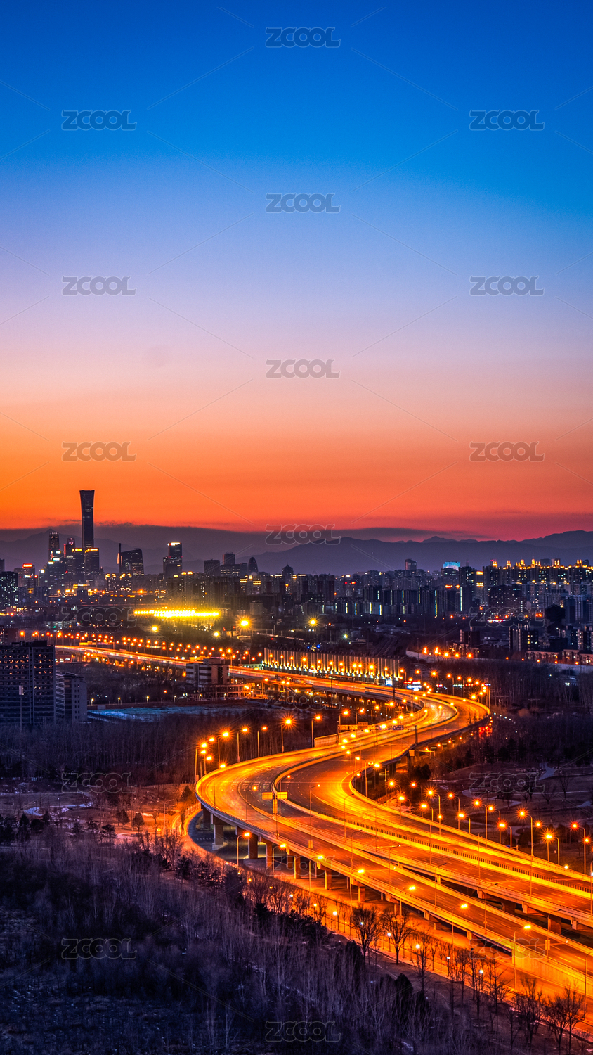 北京傍晚城市燈光交通車流CBD建筑群立交橋