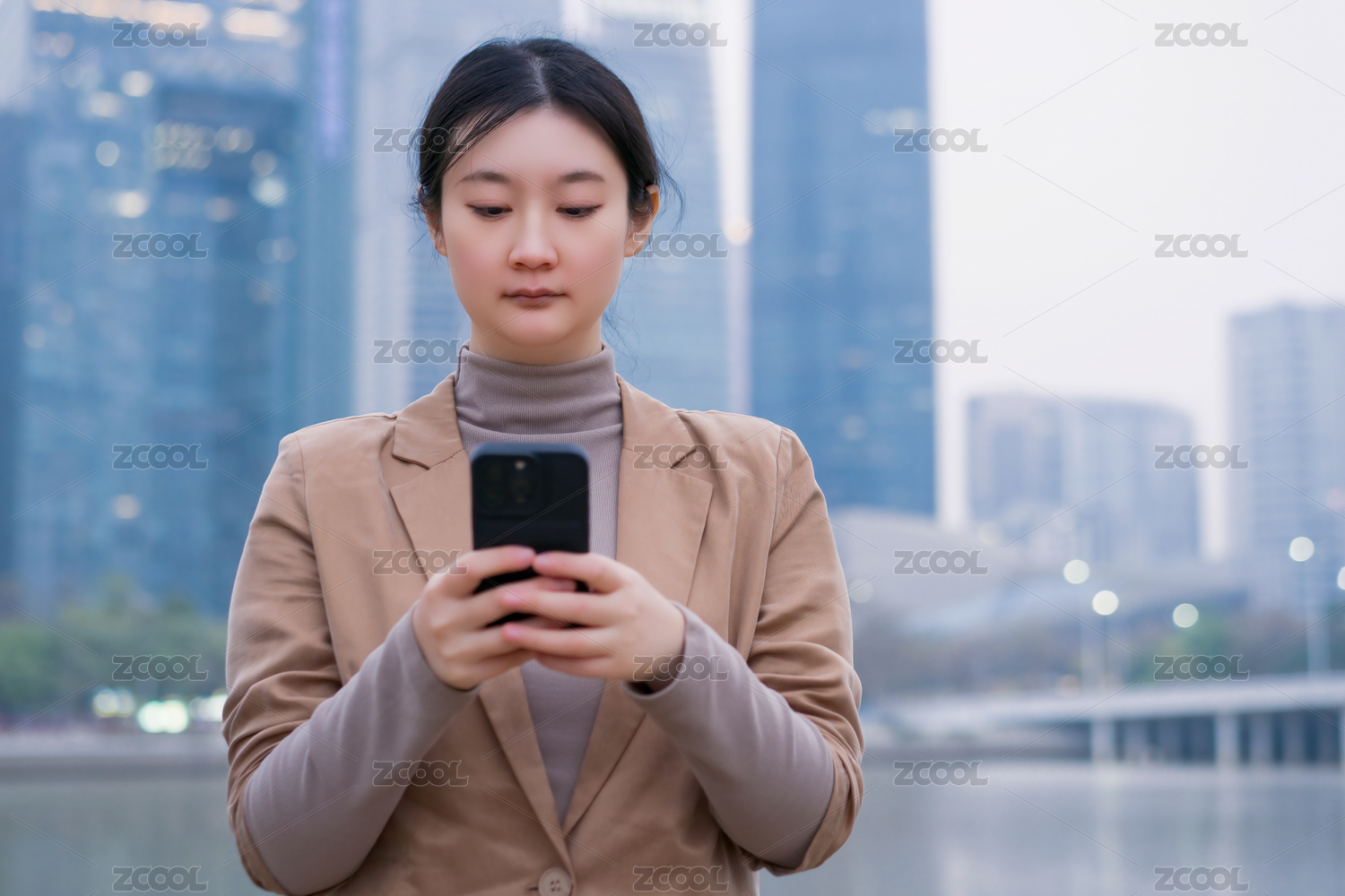 職業(yè)女性在城市燈光下使用智能手機(jī)
