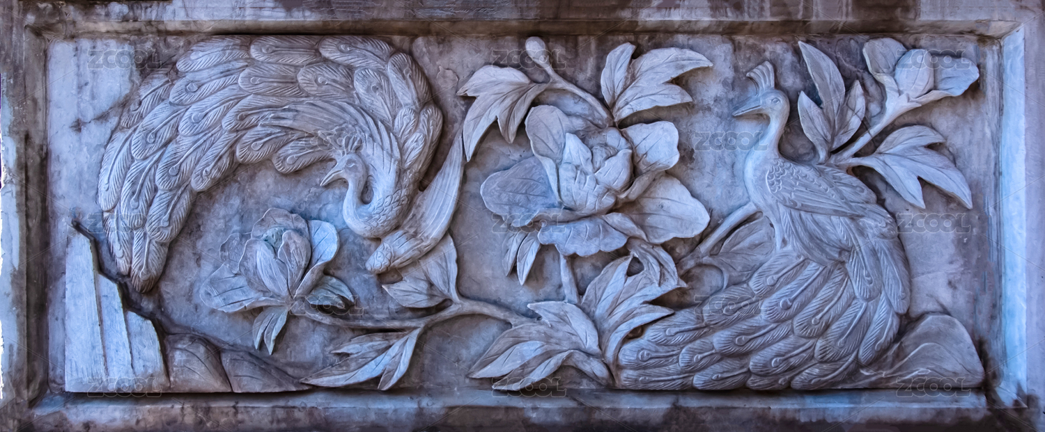 民居住宅孔雀牡丹花浮雕裝飾構(gòu)建