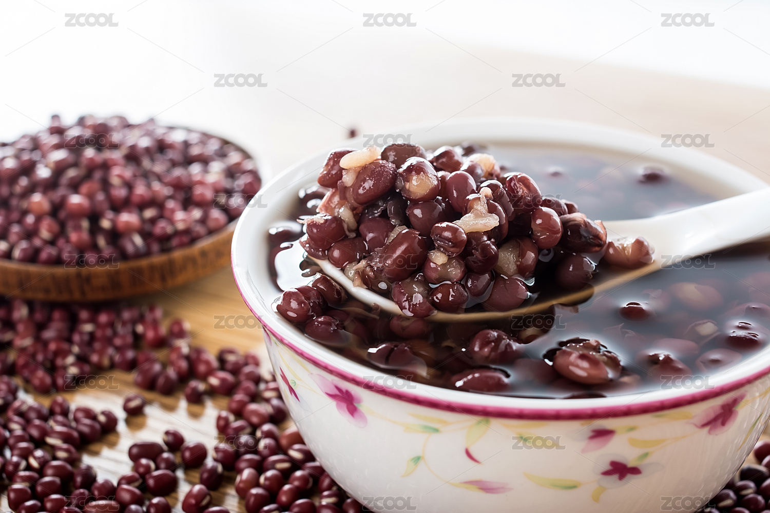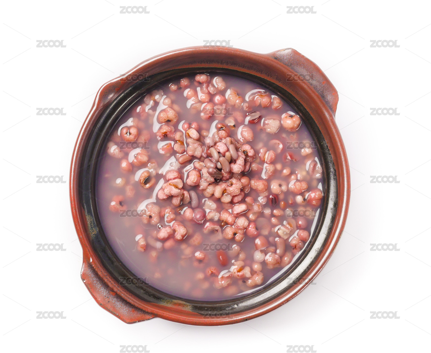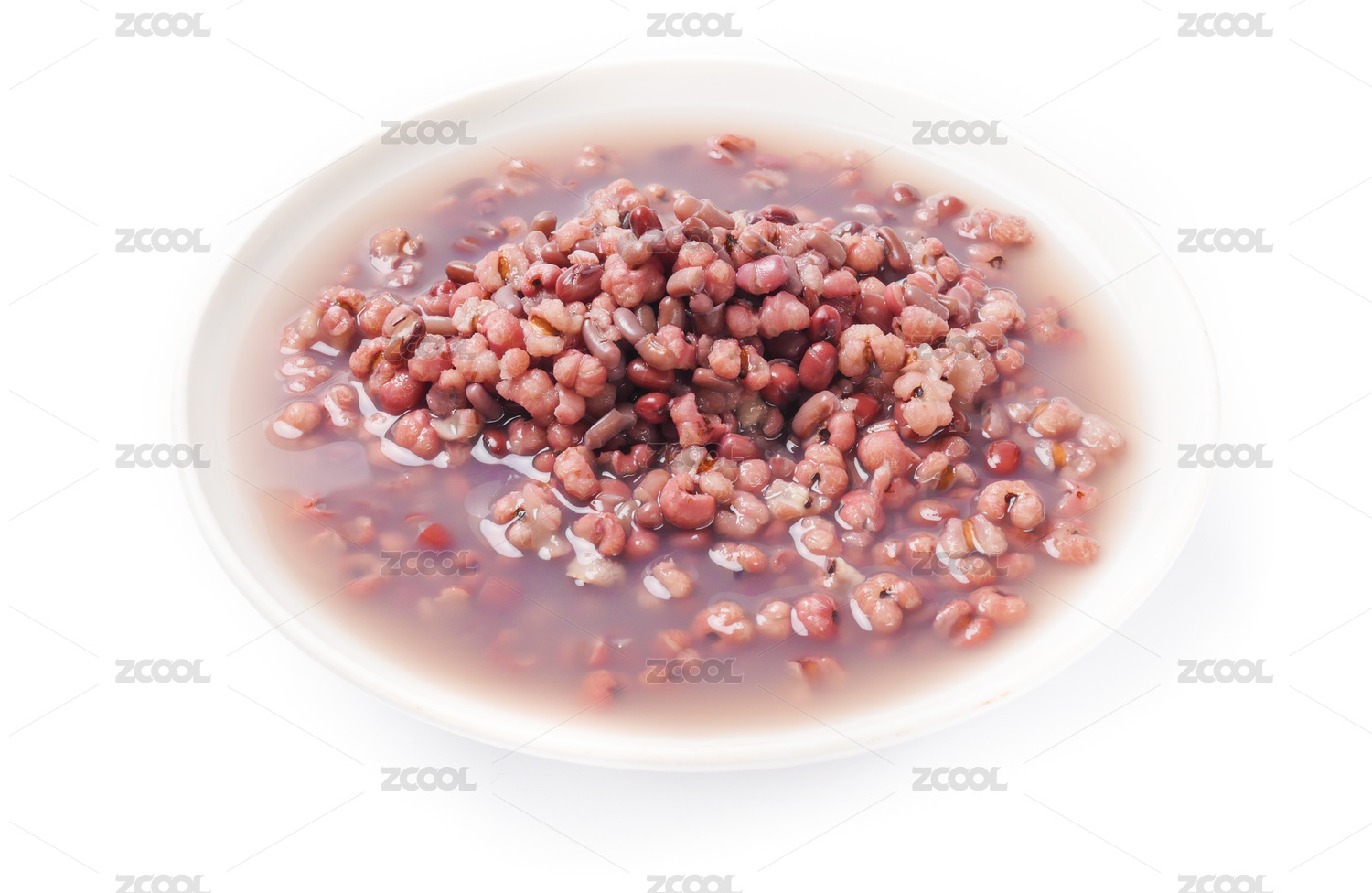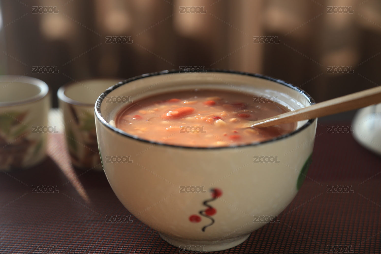 窗邊上的淺色陶瓷碗中的紅豆粥