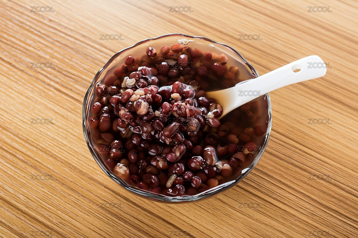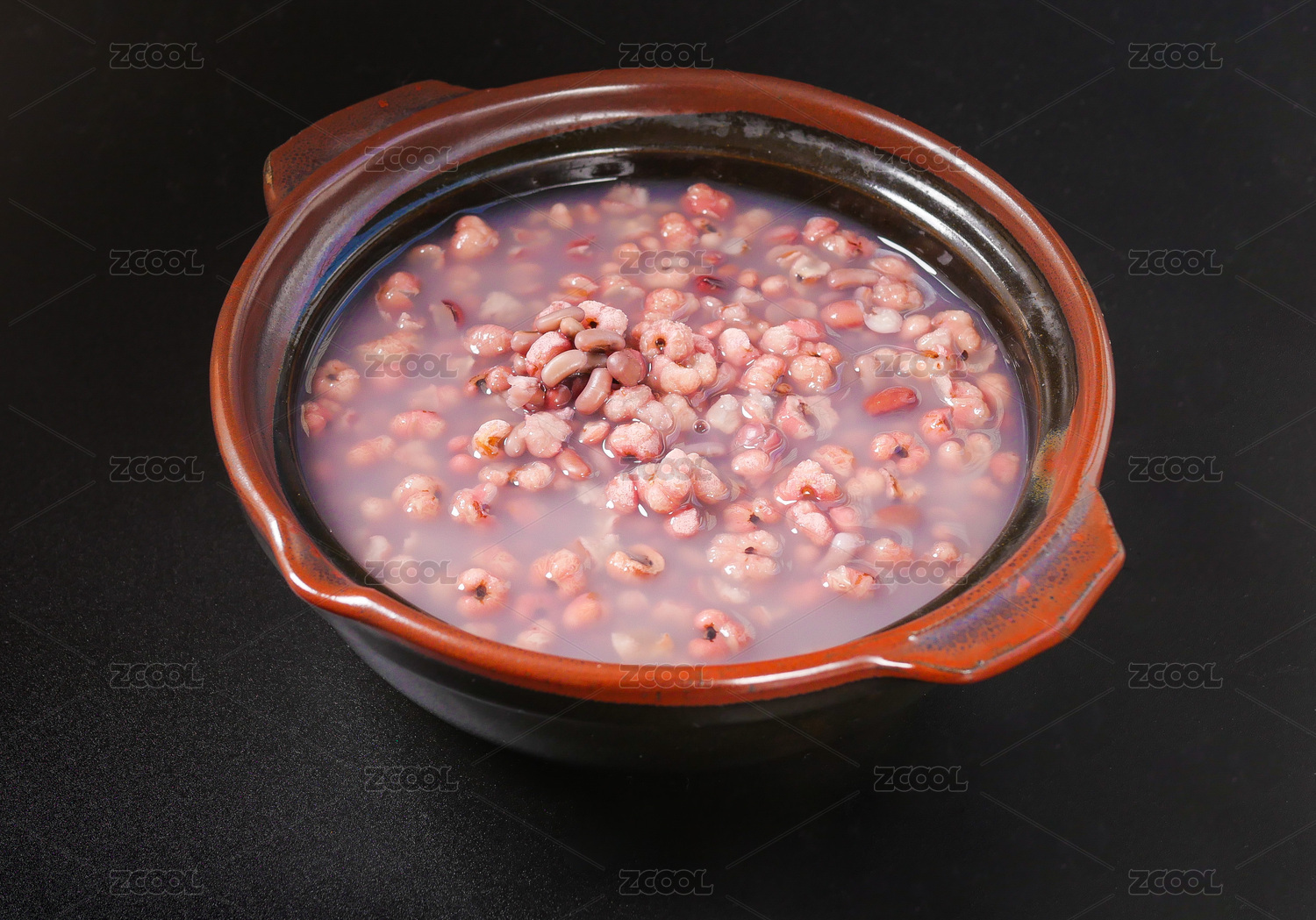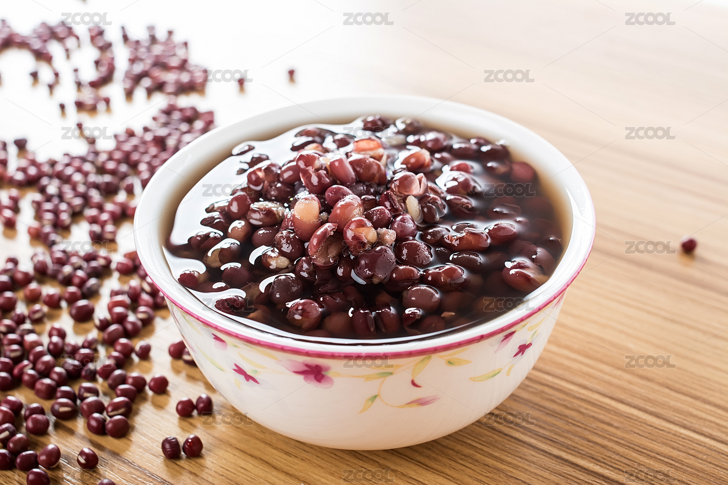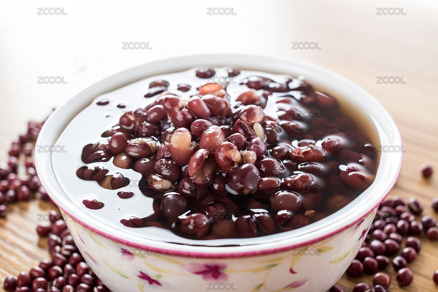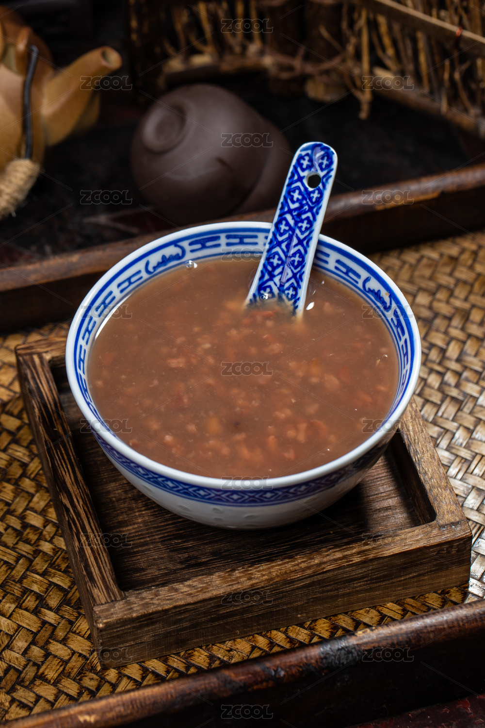 窗邊上的淺色陶瓷碗中的紅豆粥