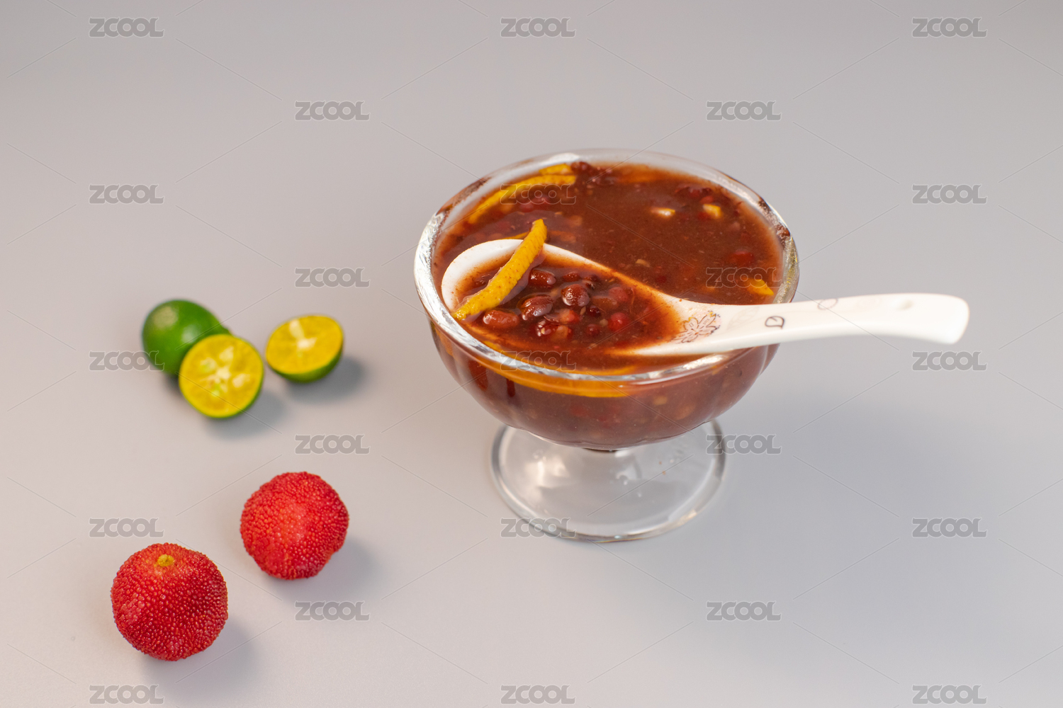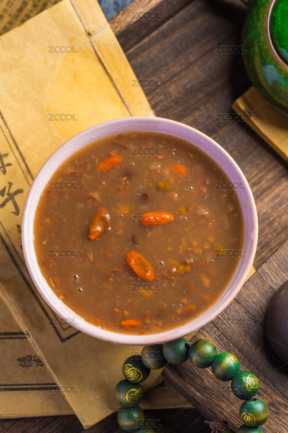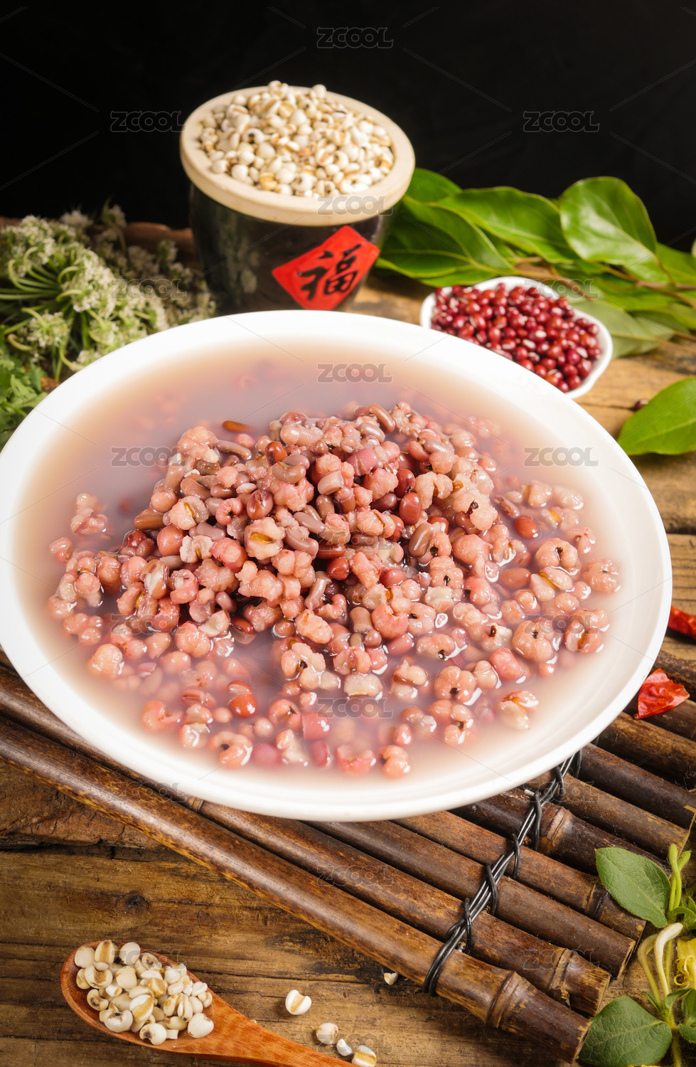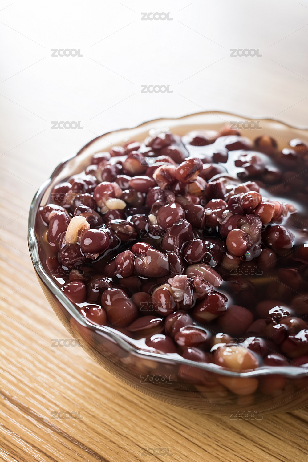 窗邊上的淺色陶瓷碗中的紅豆粥