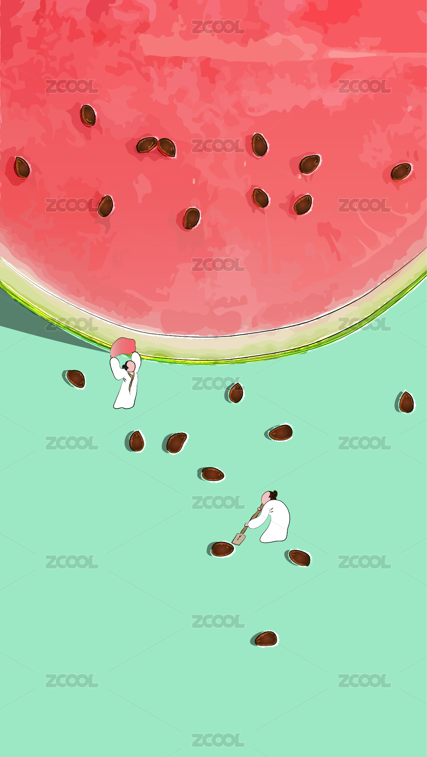 國潮夏季西瓜古人微景矢量中國風插畫素材
