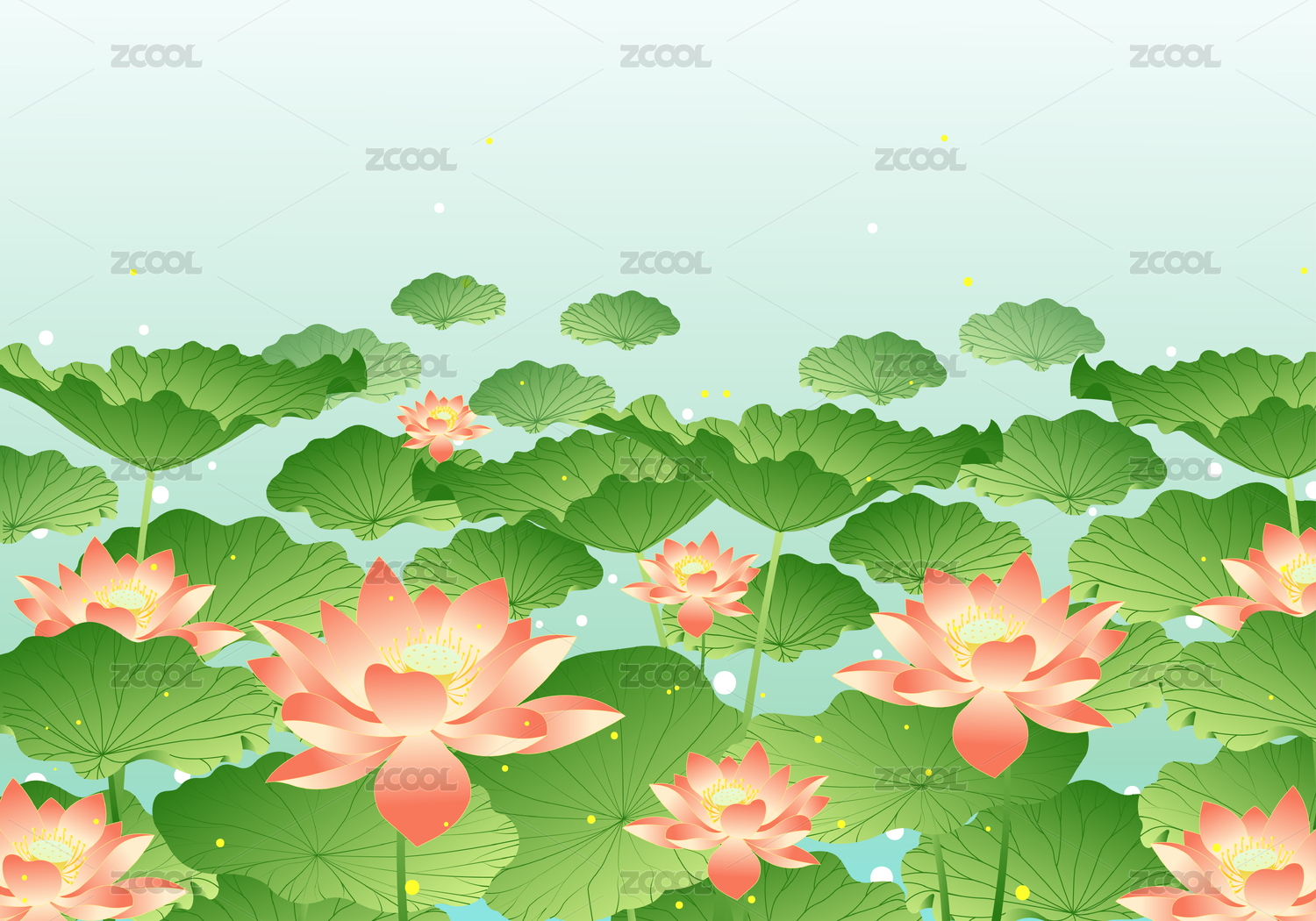 清涼夏天美麗的荷花矢量插畫