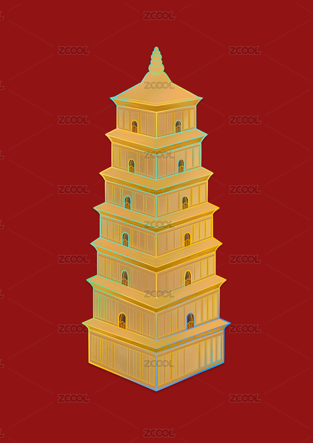西安大雁塔地標建筑國潮中國風插畫素材