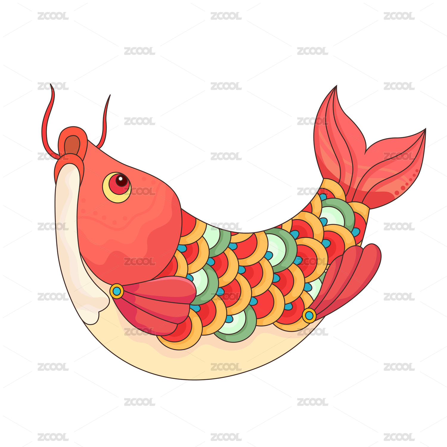 紅鯉魚國風插畫素材