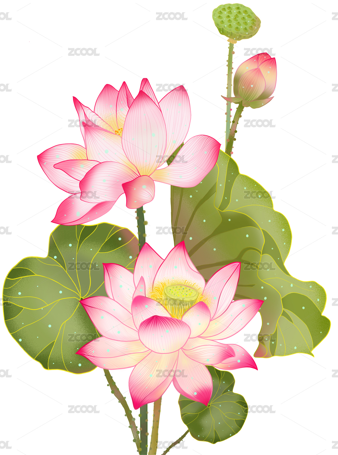 荷花新國風插畫素材